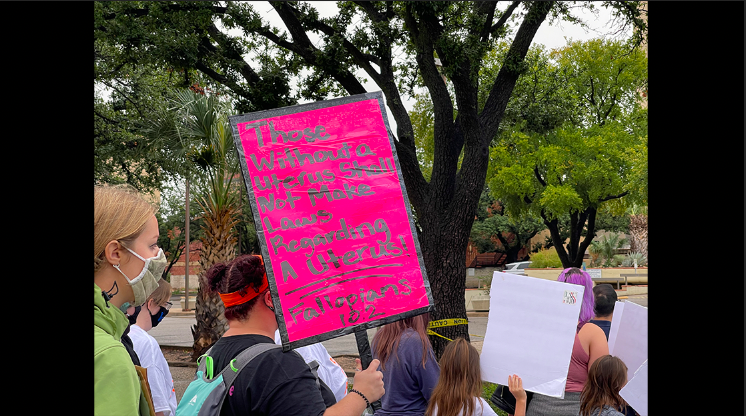 "If you are going to be sitting back and not talking ––you are just as guilty as those oppressors trying to put a ban on women's bodies," said the first speaker of the day. "Beliefs are fine and dandy, and like you, I have my own. But your beliefs shouldn't determine what someone does or doesn't do with their bodies. We have the right to our sexual freedom and our bodies just as men do. It's my body, it's my choice."