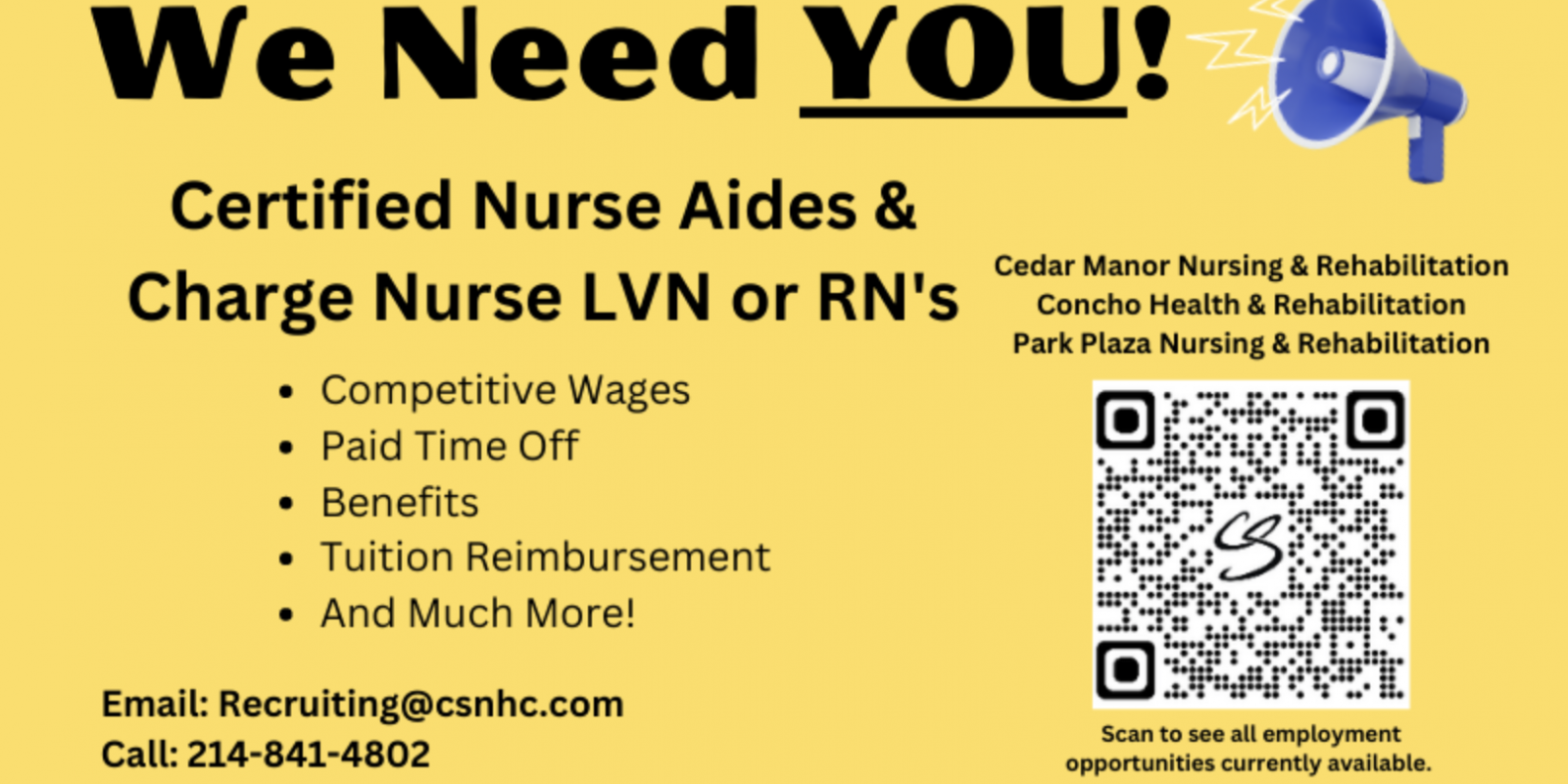 Certified Nurse Aides, Charge Nurse LVN or RN's NEEDED!