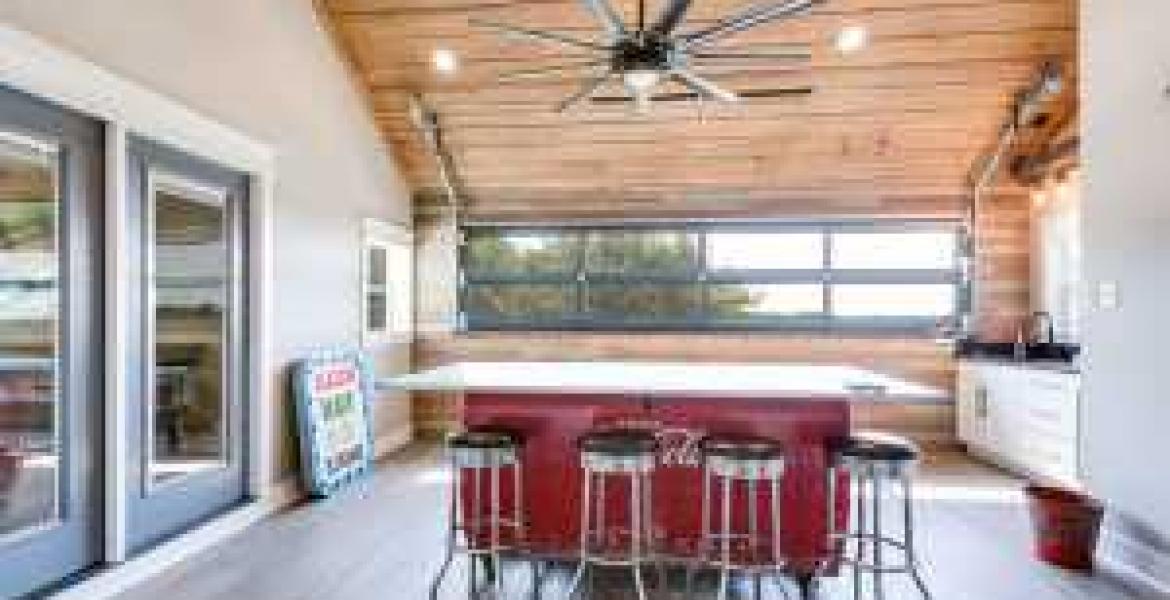 Check out this home that was bulldozed and rebuilt from above the slab. This lake home is on an owned lot and features 3 bedrooms and 2 baths with 2 living areas. The upstairs living area has an amazing view of the lake and complete with a roll up glass garage door to let the outside in. The Master suite is incredible and huge. It is complete with a luxurious bath and ready for a new owner. Out in the back yard it is complete with an outdoor firepit, kitchen area and a boat dock. Some furnishings can convey!!! Check out the pics and schedule your showing today!!!!