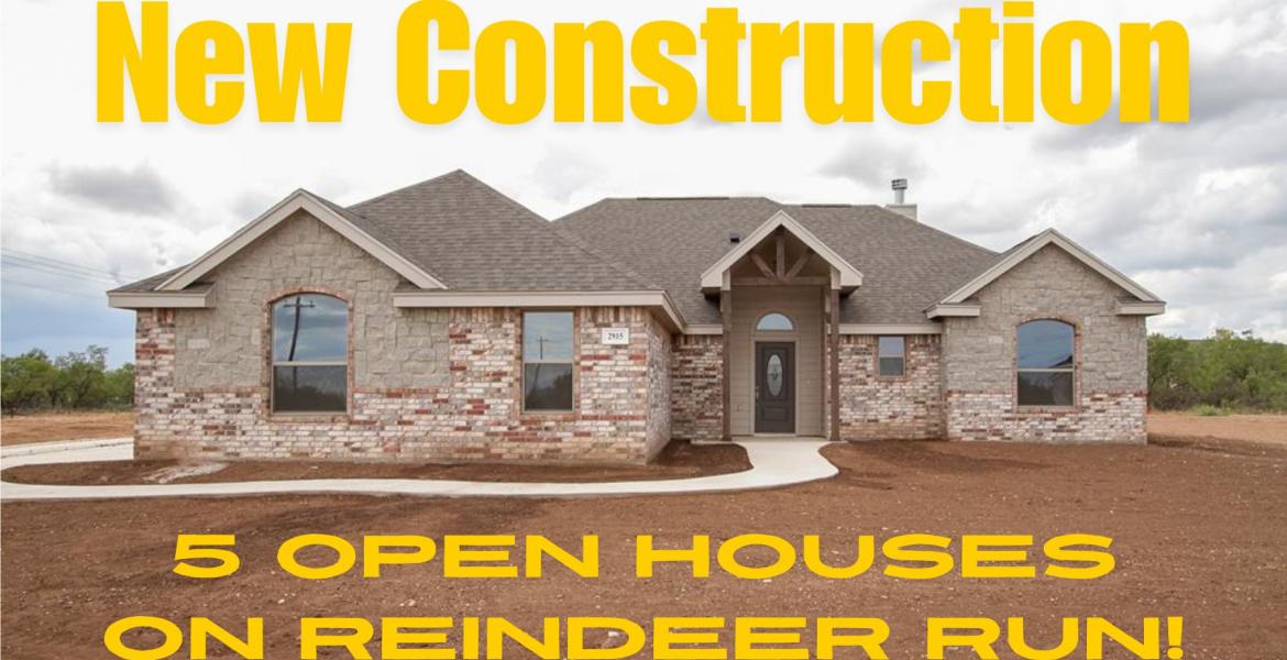 Check out FIVE Open Houses. Each of the New Construction homes on Reindeer Run are located in Buffalo Heights West. Directions: Take FM 2888 towards Grape Creek. Just past the main entrance to Buffalo Heights take a left on Grey Wolf. Go down until you reach the stop sign at Ponca Path. Take a left on Ponca Path and go until it dead ends at Big Horn. Turn Right onto Bighorn, the first street on the left is Reindeer Run. The second street in the left is Wild Boar.
