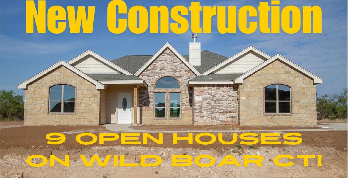 Check out NINE Open Houses. Each of the New Construction homes on Wild Boar Ct are located in Buffalo Heights West. Directions: Take FM 2888 towards Grape Creek. Just past the main entrance to Buffalo Heights take a left on Grey Wolf. Go down until you reach the stop sign at Ponca Path. Take a left on Ponca Path and go until it dead ends at Big Horn. Turn Right onto Bighorn, the first street in the left is Reindeer Run. The second street in the left is Wild Boar.