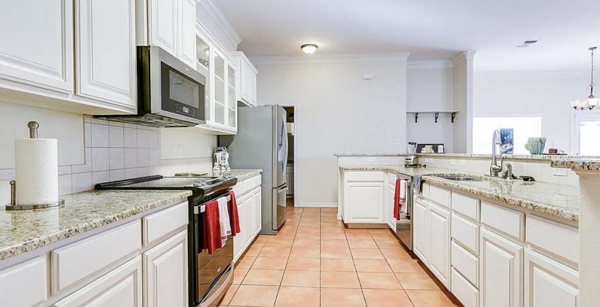 This home is a dream for entertaining and overlooks Sunset Lake! Conveniently located to shopping restaurants, schools and parks. Home features an open floor plan with spacious kitchen, including, granite countertops, oversized island, Saltillo looking tile and carpet in bedrooms! 10'-12' ceilings with crown molding throughout, oversized bedrooms with nice walk-in closets and shelving built-in. There are two covered patios to enjoy the sunrise and sunsets. The primary bathroom includes loads of cabinetry and an oversized walk-in shower to relax after a long day. Automatic sprinkler system in front and back yards. Join us on Sunday from 2:00--4:00pm and enjoy snacks from McAlister's!