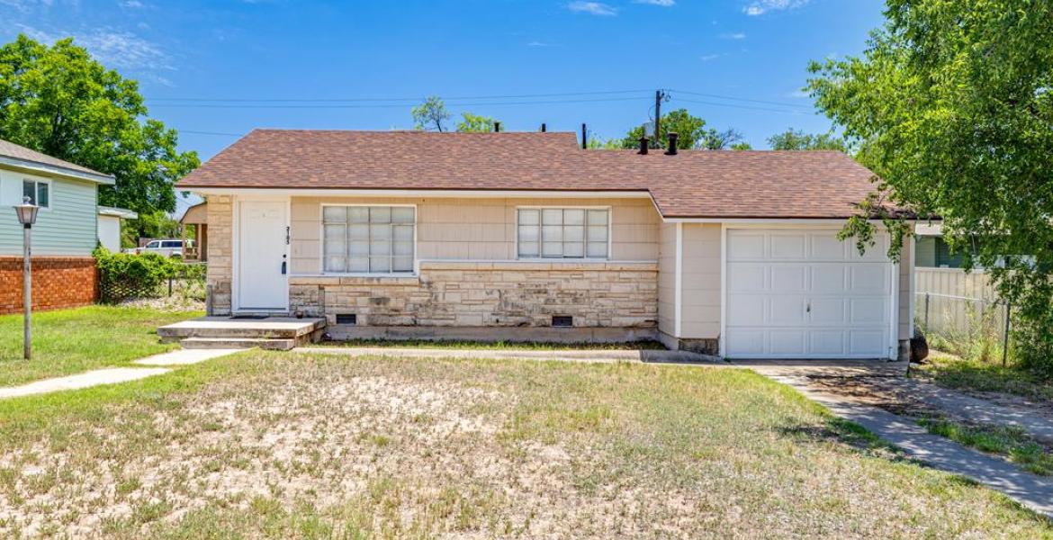 Remodeled in 2023, this 3-bedroom, 1-bath home offers 1,105 sq ft of clean, comfortable living space. It features central AC and heat, beautiful vinyl plank flooring, and a recently installed roof in 2024. The kitchen comes equipped with a granite countertop, stove/oven and refrigerator. A large fenced yard, covered patio, and 1-car garage add to the appeal. Move-in ready and easy to maintain.