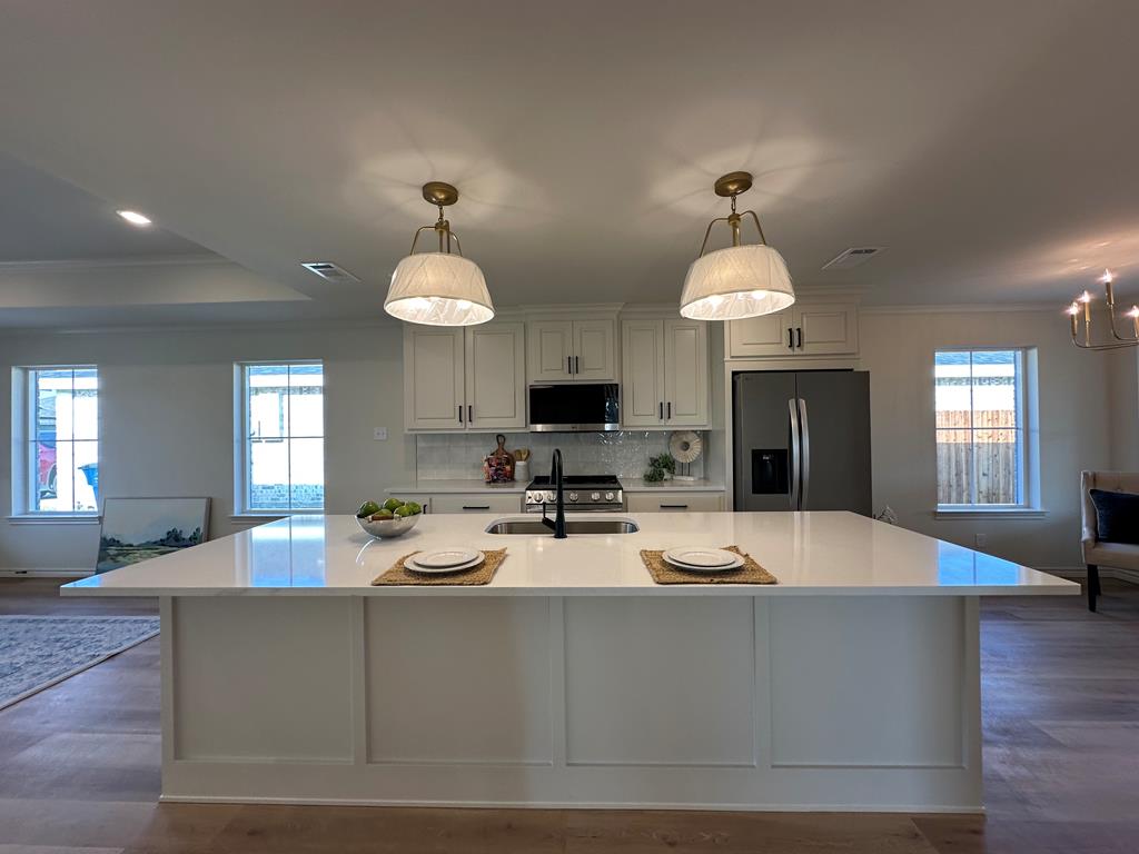 Another outstanding build by Deluxe Custom Homes! This 4 bedroom, 2 bathroom home combines luxury touches with everyday comfort. From the moment you walk in, you’ll be welcomed by decorative tray ceilings, a warm fireplace, recessed lighting, and durable wood-look tile flowing throughout the main living areas. The open-concept design makes entertaining seamless, while the chef-inspired kitchen and spacious dining area create the perfect hub for family and friends. The private primary suite offers a true retreat with an oversized walk-in closet, a spa-like freestanding tub, and a sleek walk-in shower. Every detail has been thoughtfully designed to deliver high-end living at an affordable price. Don’t miss the chance to make this home yours!