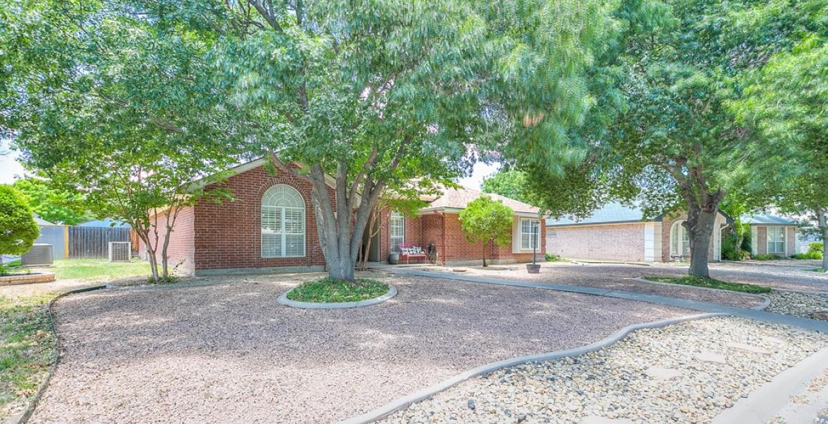 This short quiet street lined with trees is a tranquil location with a house that anyone would be proud to call home. Greeted with large front yard trees and xeriscaped landscaping, you will be anxious to view the inside. A large living space opening to a uniquely covered patio and expansive back yard welcomes you into the home. This several cook kitchen has abundant space and has a small breakfast bar and a big area for a large dining table. White cabinetry and granite counters keep the space light and bright. Split bedrooms allow for a private master suite that offers an en suite with his and hers closets. This home has beautiful hardwood and tile floors -- no carpet! No doubt, this home will be on everyone's list to see, so don't miss your chance to own this lovely home in the desirable Southland addition!