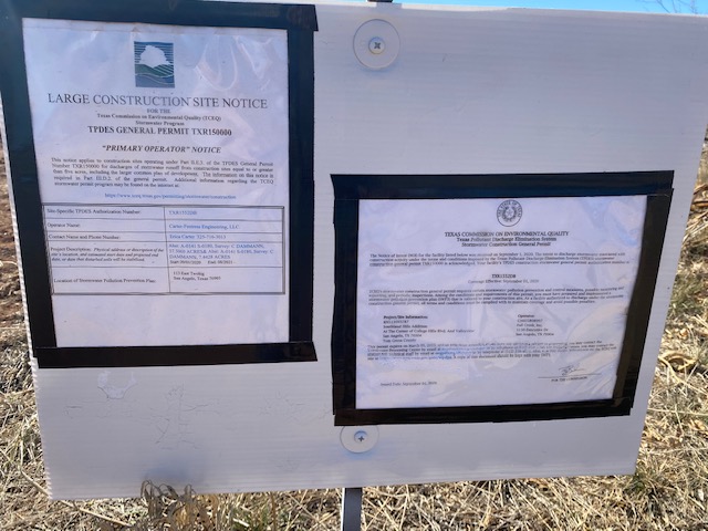 A Texas Pollutant Discharge Elimination System Stormwater Construction General Permit was issued on Sept. 1, 2020. The permit expires in Aug. 2021.