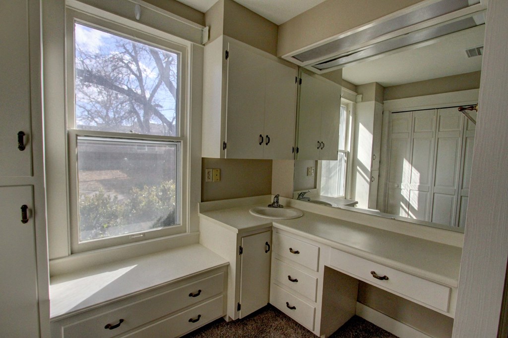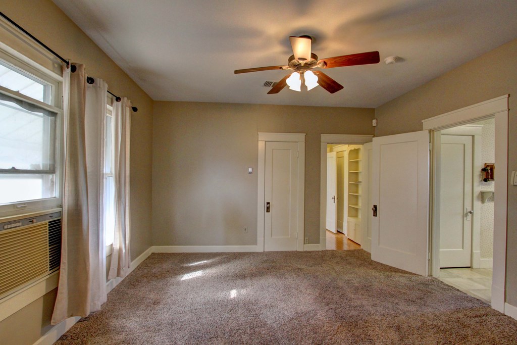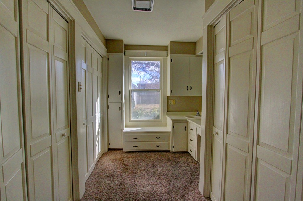 The high ceilings and wide baseboards add to the 1950's charm of the home. Two bedrooms are downstairs and the master has a large dressing room/closet with sink. The two upstairs bedrooms have a Jack and Jill bathroom. A 10x15 utility room can be used as a sunroom or third living area.