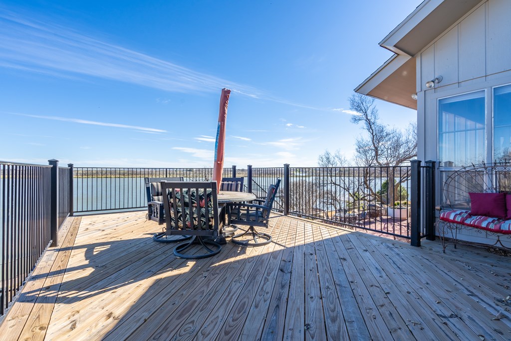 SAN ANGELO, TX — Stand in your living room gazing at the main body of water and the 180 degree view of the lake or enjoy leisurely days sitting on one of the 4 beautiful decks! Dive into the approx 13' water off the deck. Many recent upgrades such as new granite and farm sink in kitchen, remodeled bath rooms, fixtures, and paint. New roof installed 1-1/2 years ago. Amazing closets and storage galore....every woman's dream! Three living areas to be enjoyed for entertaining. Private cozy courtyard off of the master. Interior decks and patios feel very secluded, and outdoor living spaces are amazing. Two boat lifts and extra storage in front and by dock. Make your appointment today to see this lake home!
