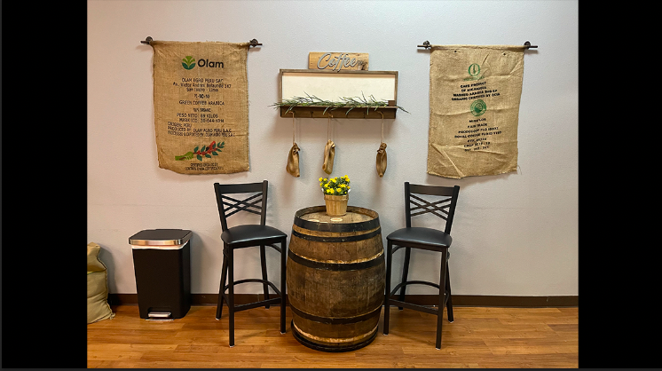 Visitors will also see whiskey barrels all around the store that serve two purposes. In addition to being part of the beautiful decoration, the barrels are also part of a whiskey-barrel-aging process that will be served at the store for a unique taste. A bourbon-infused cold brew and a cold-brew liquor are also in the works for The Bearded Barista.