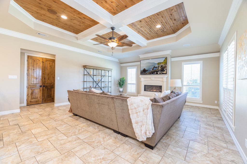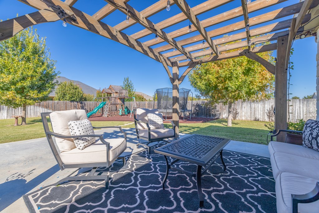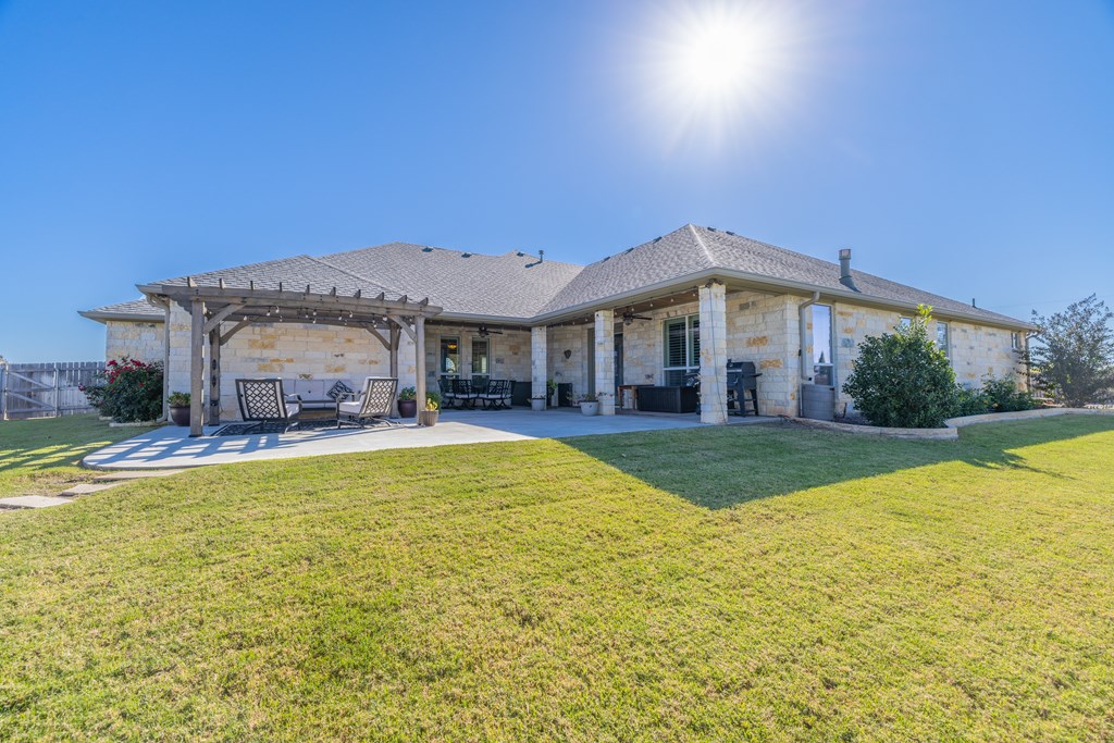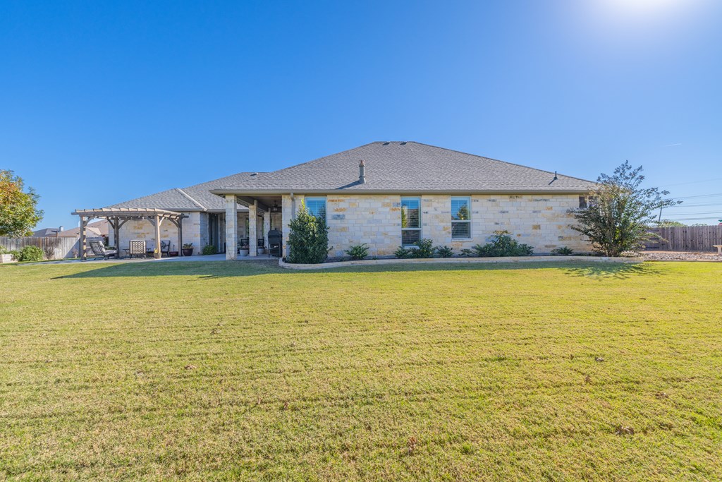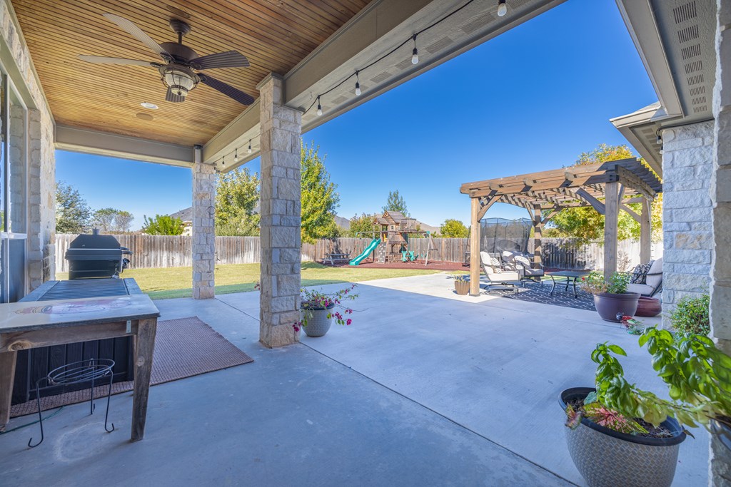 This exquisite home includes a gas fireplace, plantation shutters, 7 zone heating & cooling, surround sound audio controls in 6 rooms, & custom tray ceilings. Outside, the spacious backyard includes an extended patio, pergola, & vibrant landscaping. With so many incredible features, you'll fall in love!
