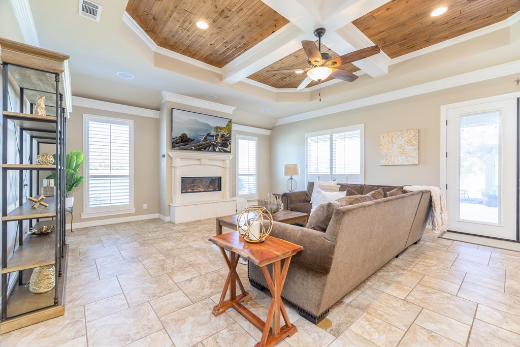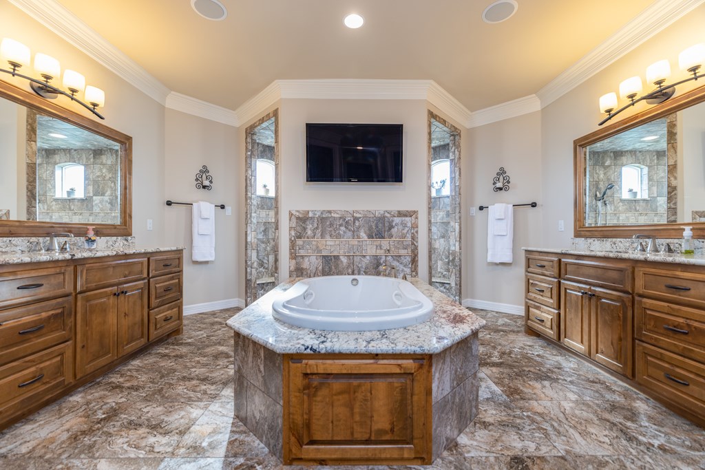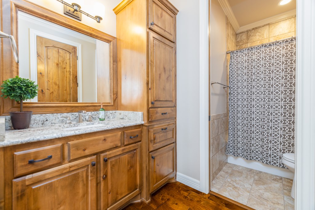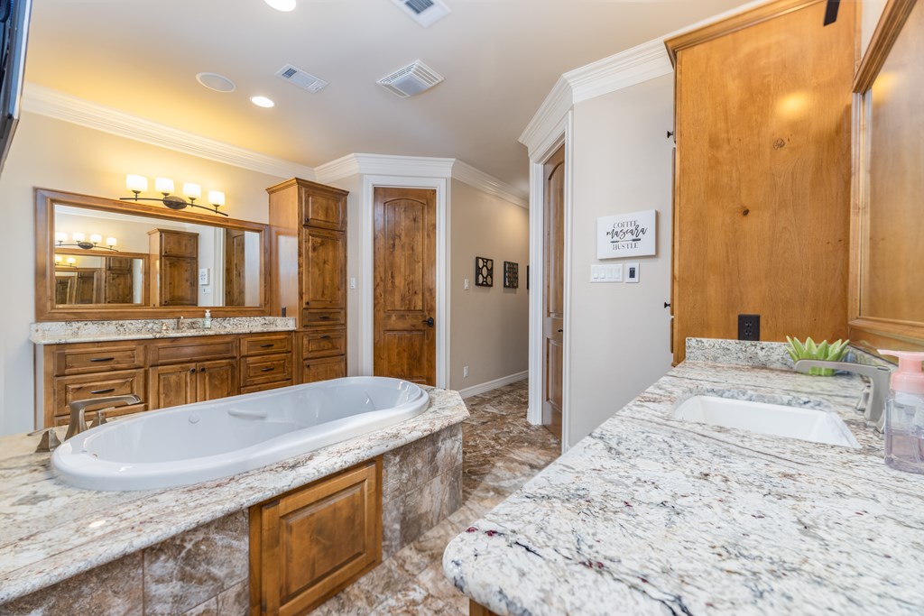 The owner's suite has its own backyard entrance & spa-like bath, featuring dual vanities, tub with circulating heating, & walk-through rain shower. In the large, chef-style kitchen, enjoy amazing amenities like commercial-grade appliances, beverage area with wine rack & refrigerator, granite countertops, endless storage, & plenty of room for entertaining.