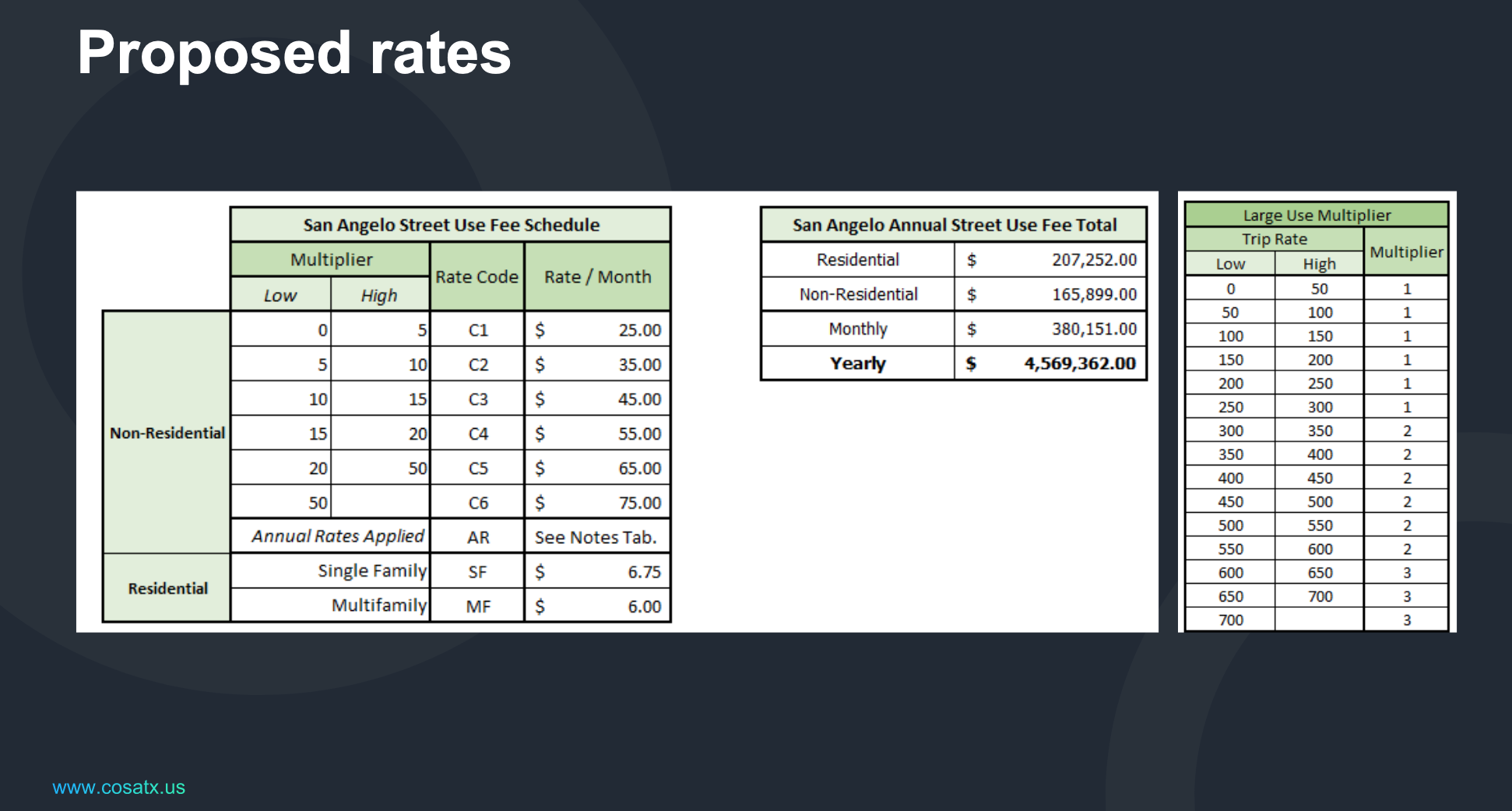 SAN ANGELO – The San Angelo City Council meets in special session Tuesday to conduct a strategic planning meeting which includes a possible 'Street Use Fee' of $6.75 per month added to residential water bills to pay for street maintenance.