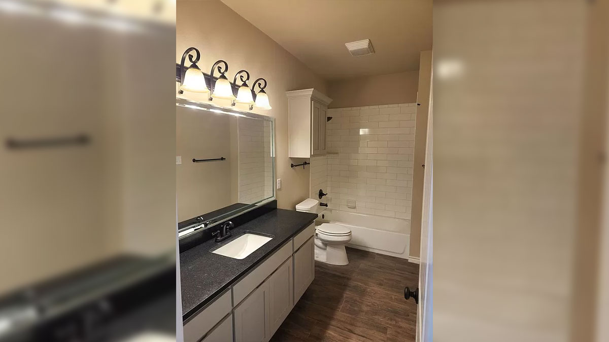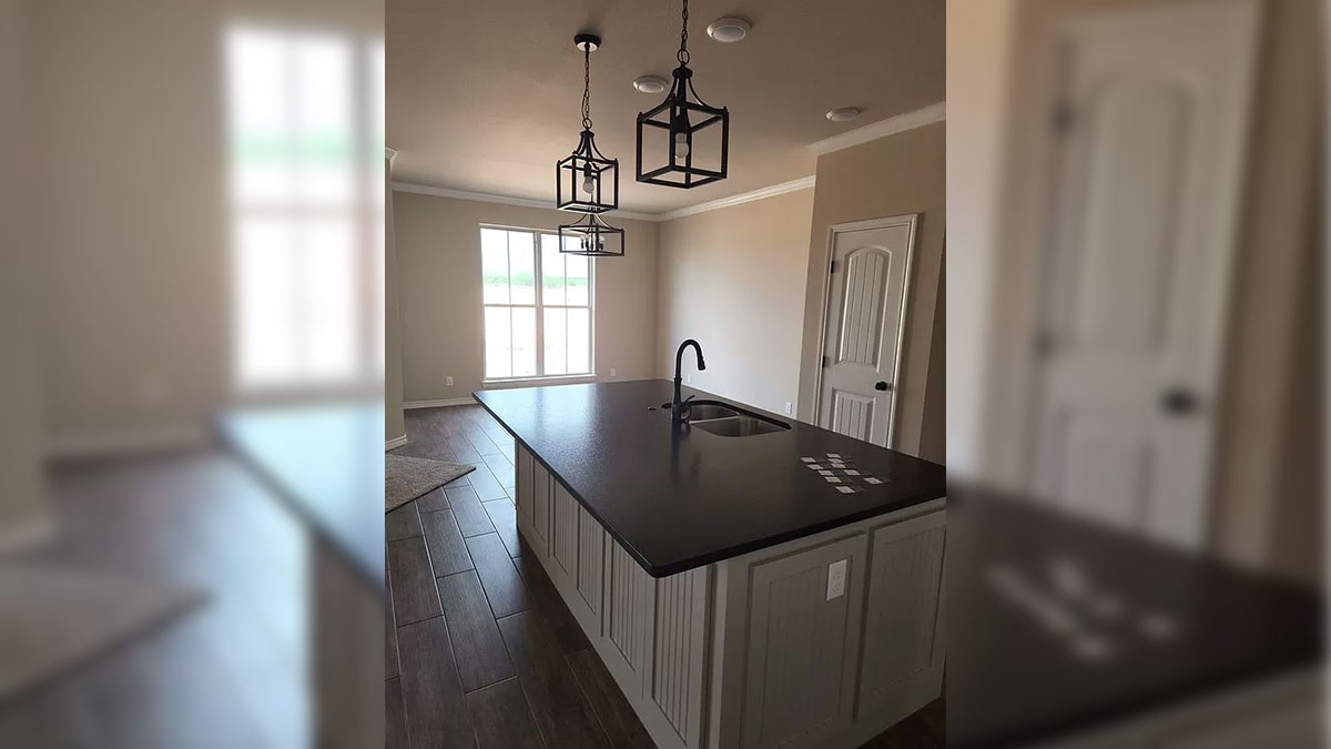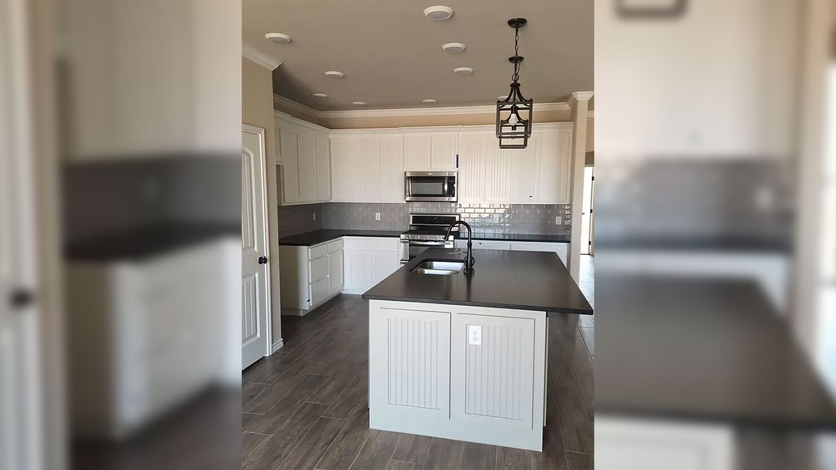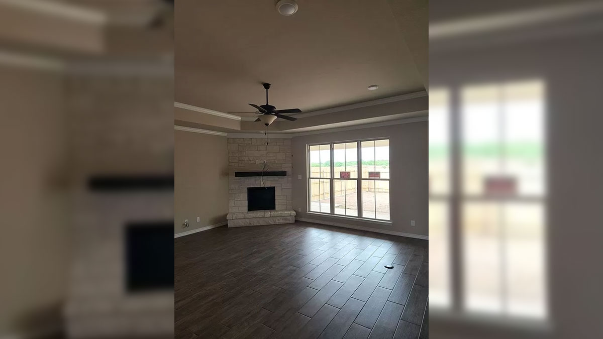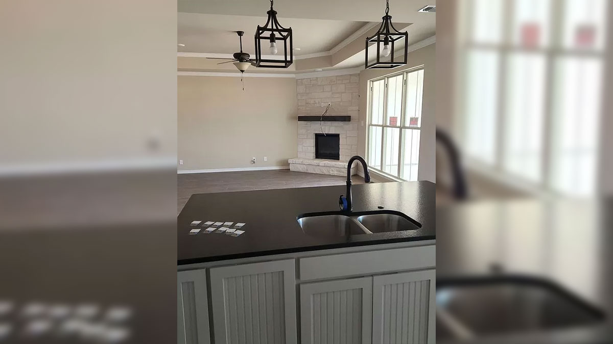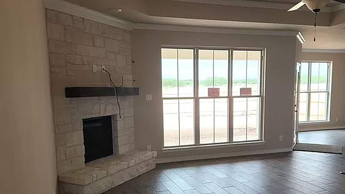SAN ANGELO, TX — New construction. Beautiful 4/2/2 Farmhouse home. Living areas are tile; bedrooms and closets have carpet. Gas furnace, fireplace, stove and water heater. Leathered granite throughout. Security and bug system. Fully fenced back yard. Finished and move-in ready!
