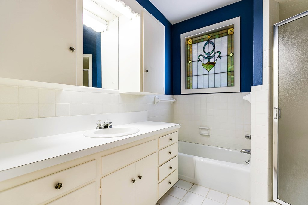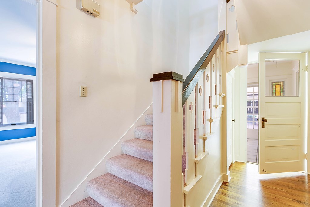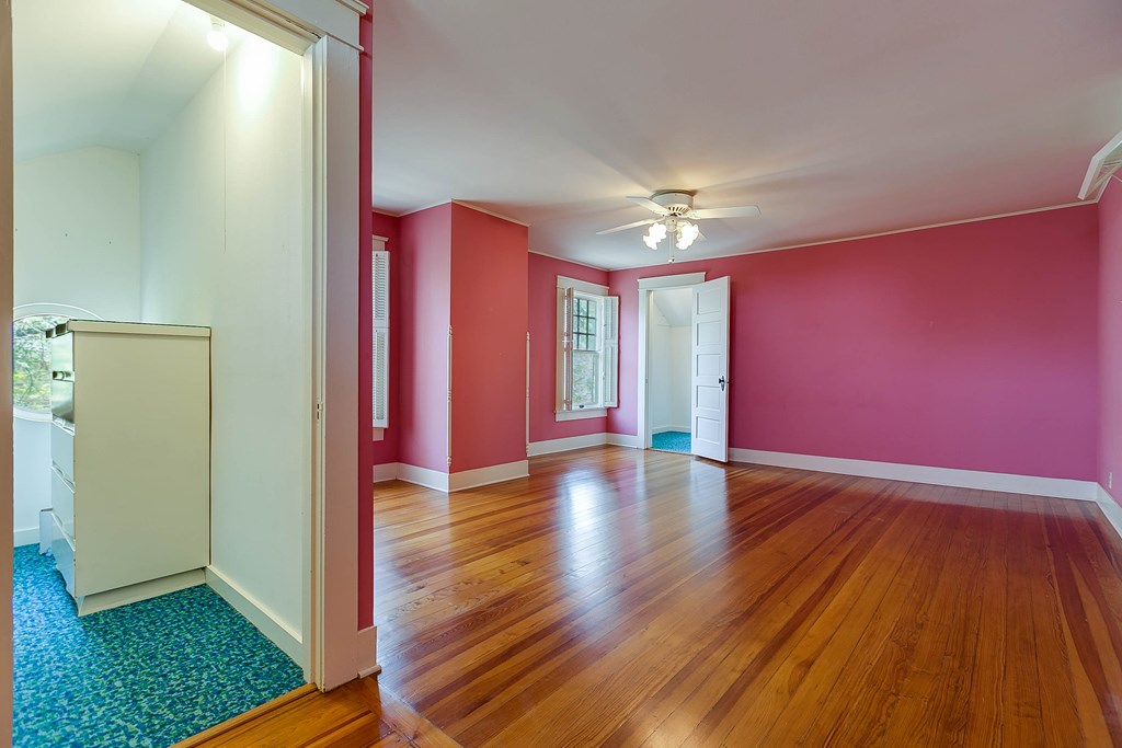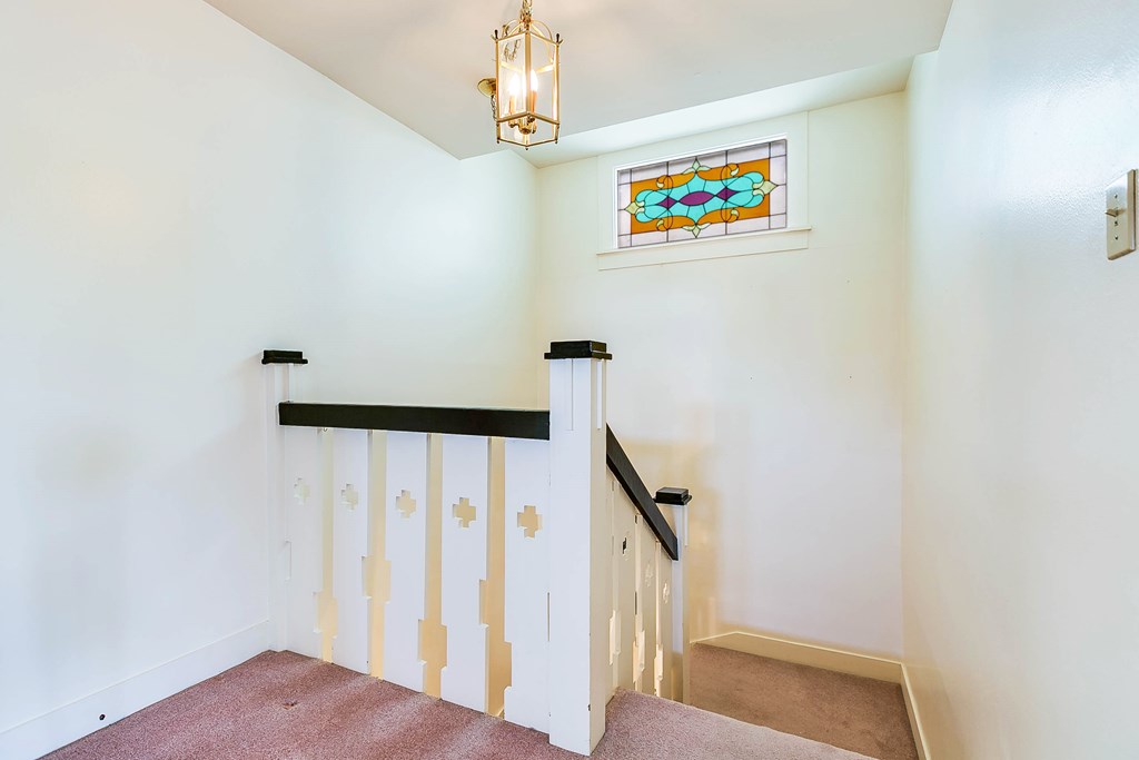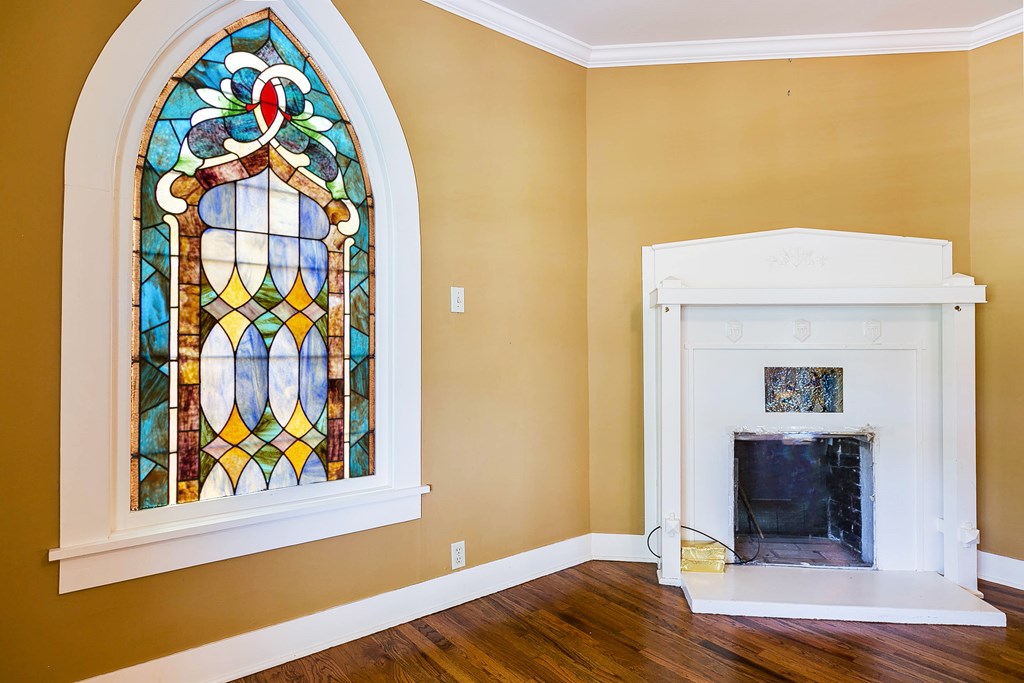 Glimpses of the past can be seen in the original fixture that hangs in the entryway, the stained glass windows scattered throughout, the pocket doors, the perfectly round port-hole windows and the original hardwood pine floors.