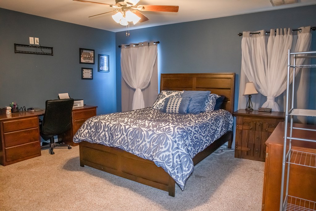 Outdoors is an 1808-sf barn with two 50' overhangs, and a 2-acre, well-fed pond with a dock and tiki hut for entertaining fun!
