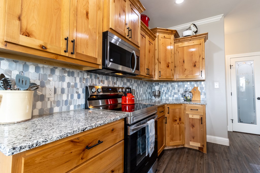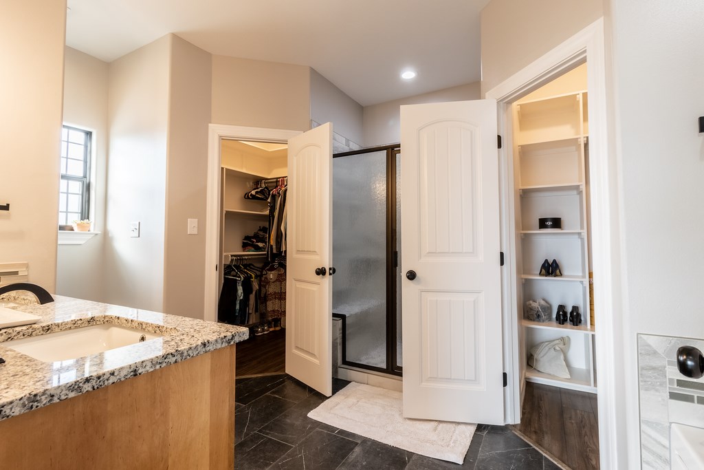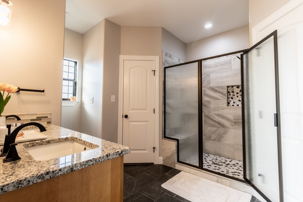The flooring is 20mm LVT with foam underneath and ceramic throughout. Custom soft close cabinets, large laundry room with a mud sink, USB outlets in all rooms, outside soffit lighting and 5 inch baseboards throughout with crown molding in the common areas and kitchen. The large master en suite features tray ceilings, a whirlpool tub, shower with a sit down bench and dual flush toilets.