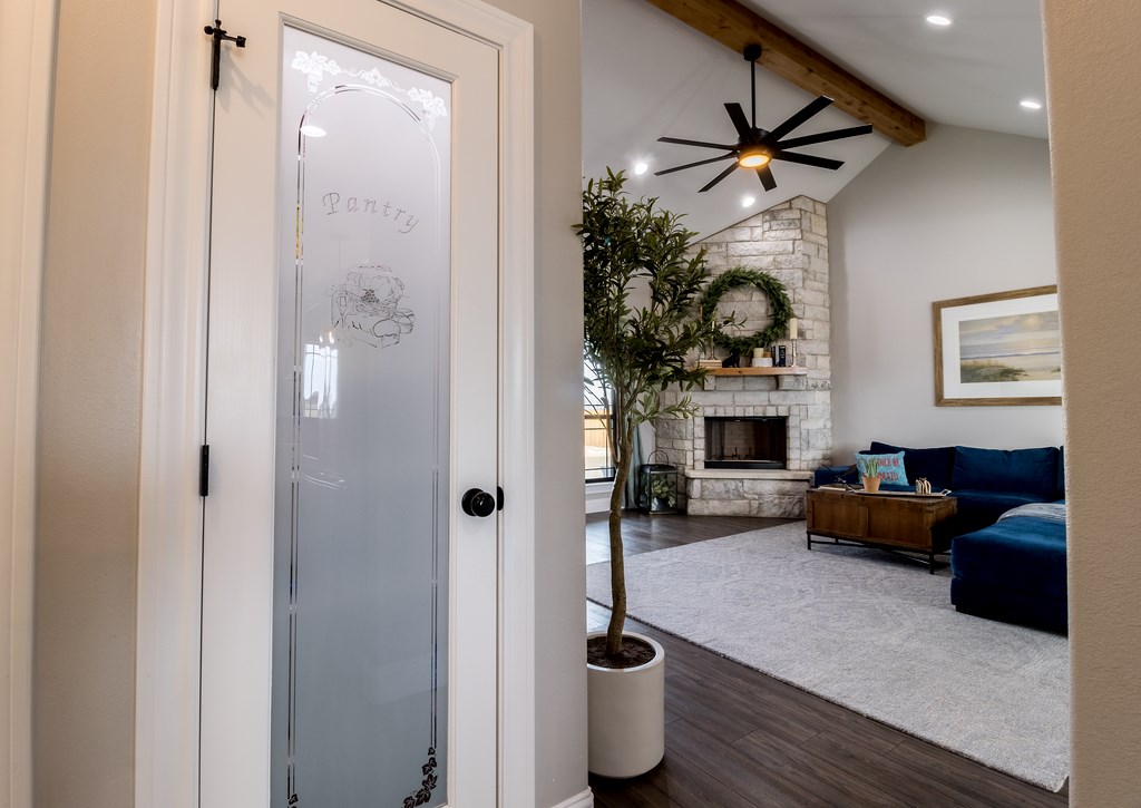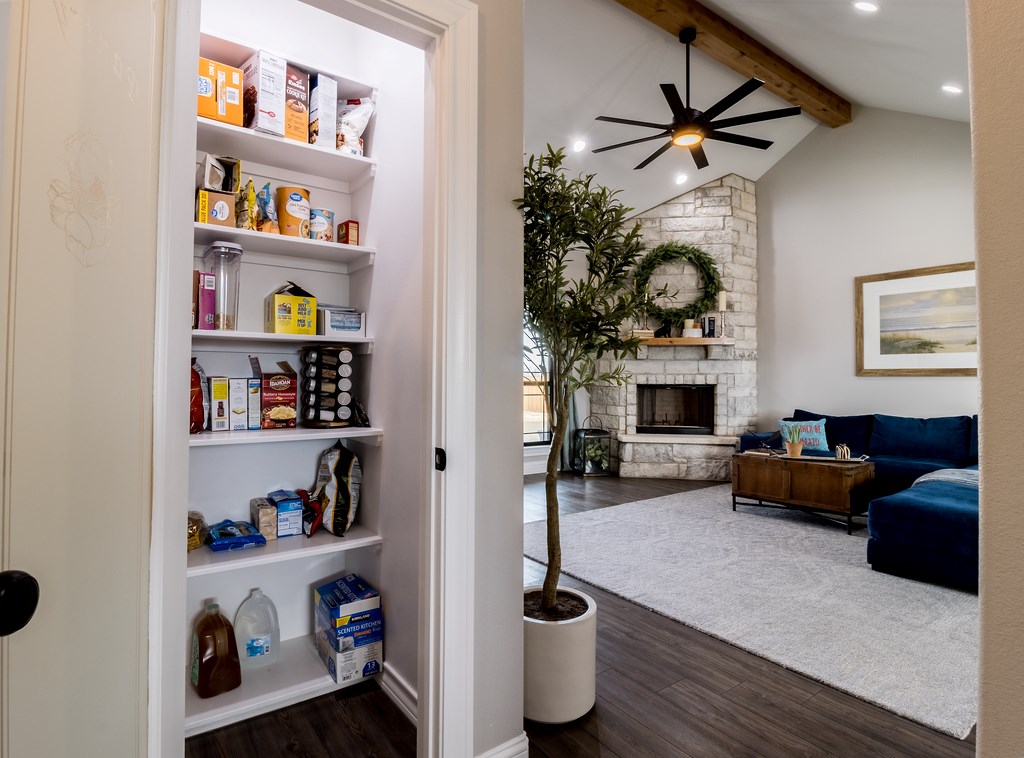 Pantry, WIFI garage door opener and one-inch curtain rods on all windows. Water softener runs throughout the home and the RO system under the kitchen sink is for drinking and cooking and is hooked up to the ice maker; both are owned and the refrigerator will stay.