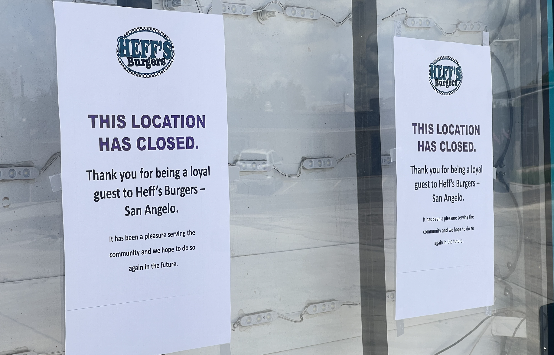 SAN ANGELO, TX – The Heff's Burgers location on Sherwood Way in San Angelo shut down Thursday.
