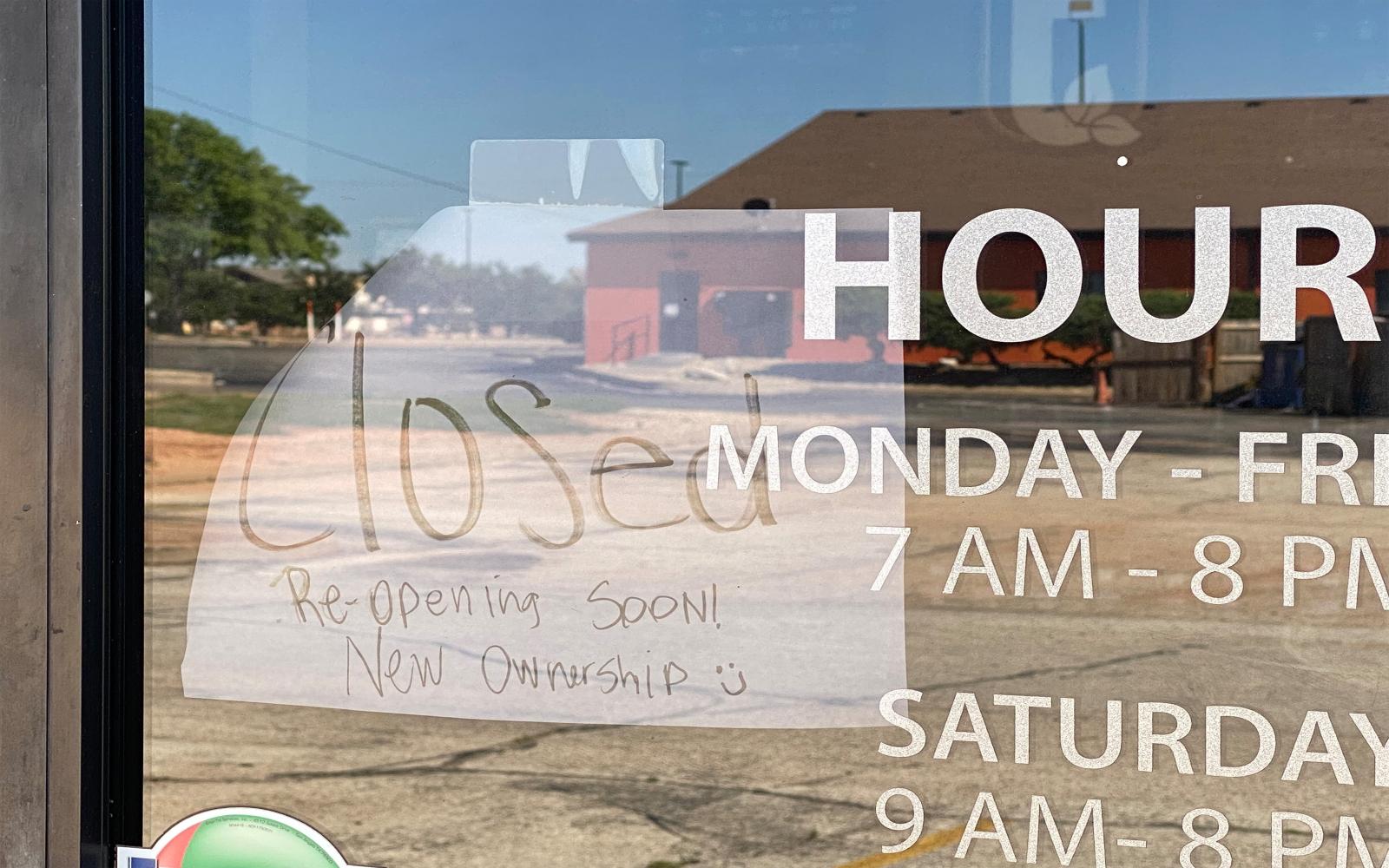 A note on the business door states that it will reopen soon, but there is no specific date.