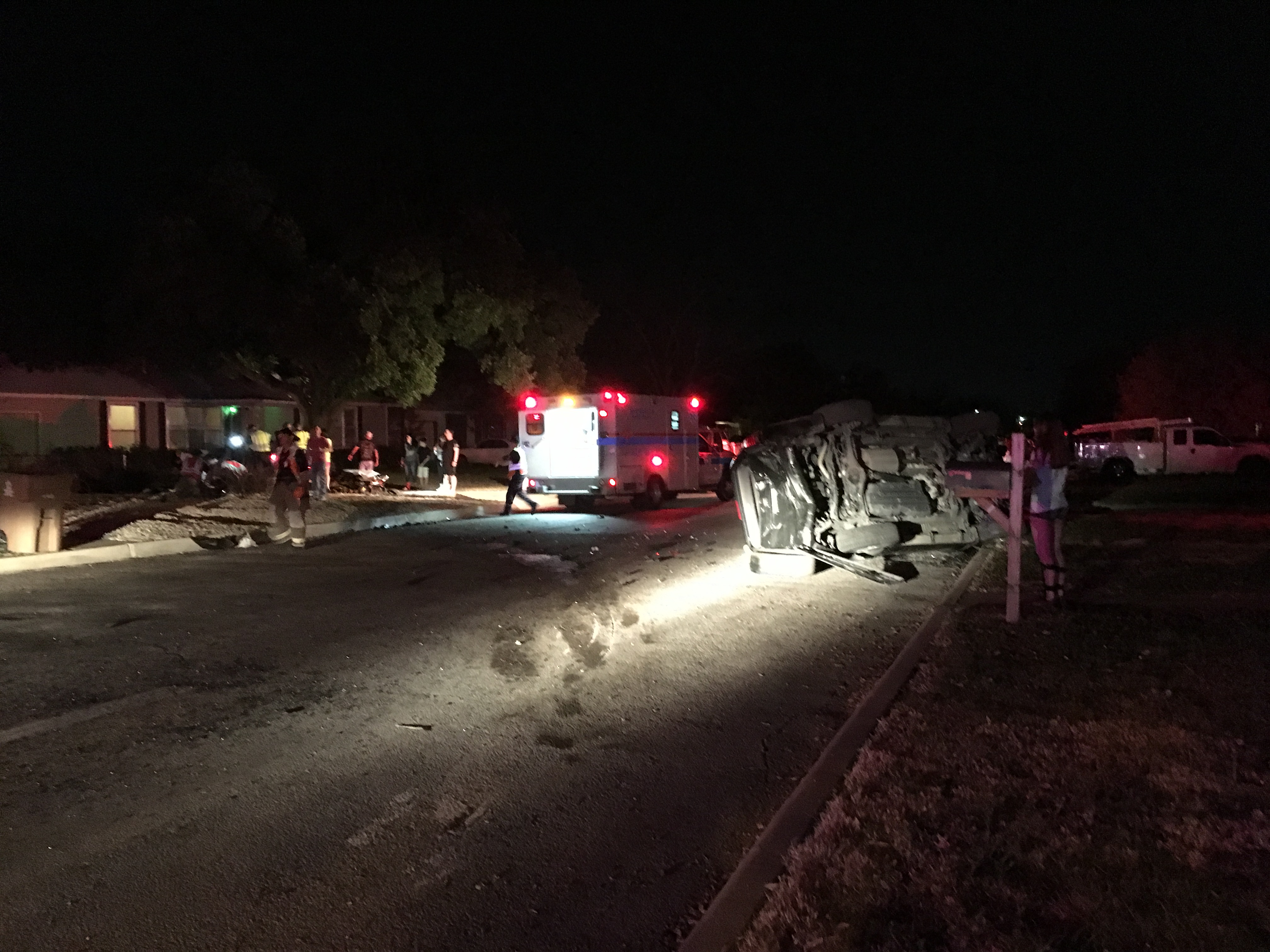 At approximately 7:40 p.m., San Angelo Police were dispatched to the stated area. Several people surrounded a black Mustang that rolled over into a yard.