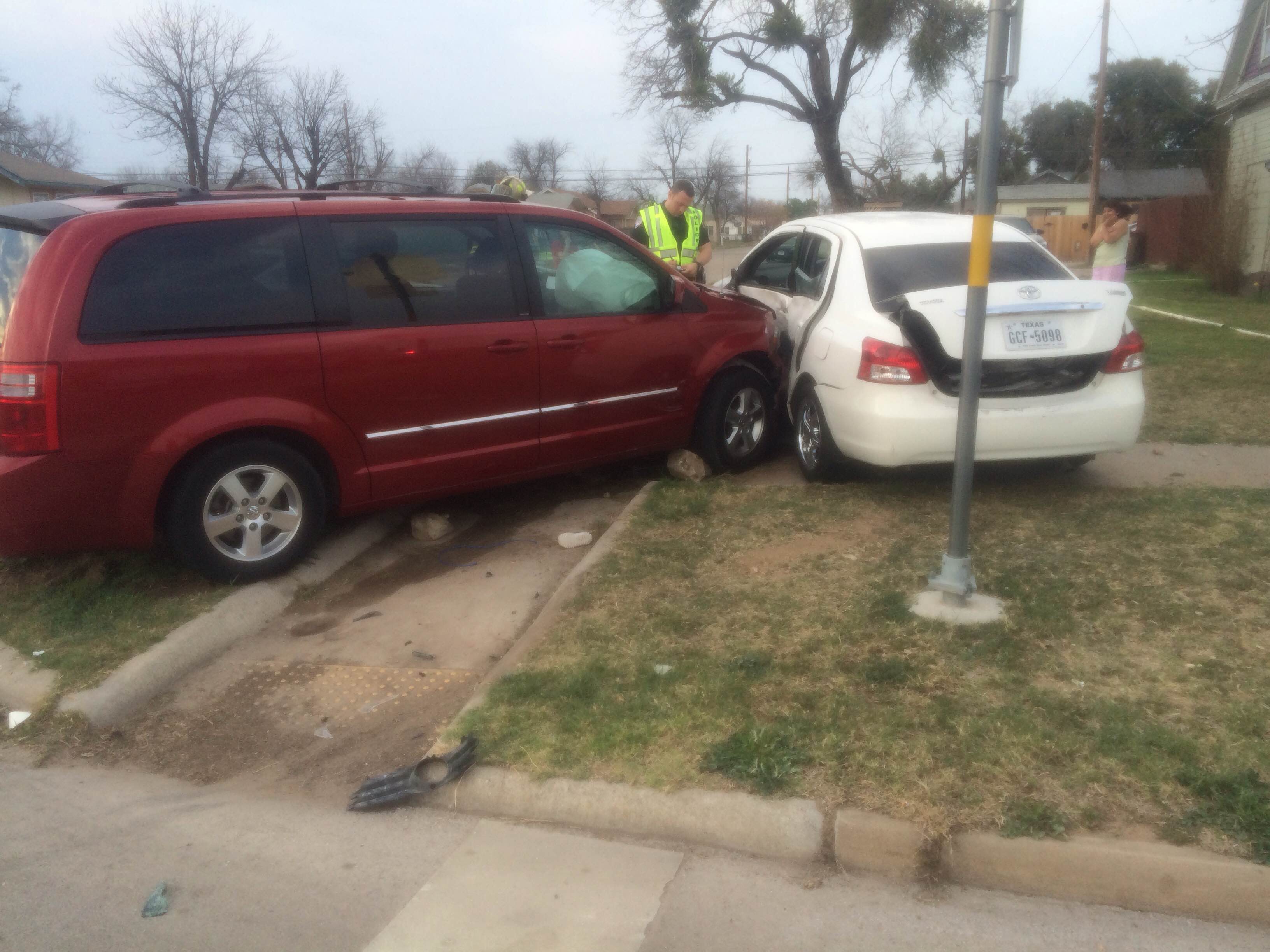 Officer Green, with the San Angelo Police Department, said the driver of the white Toyota was heading across Pulliam and North Pope Streets, but failed to yield the right of way. As a result, the red minivan struck the Toyota on the left-hand side. Green added that the three children were passengers of Toyota, and multiple sources at the scene stated the children did not have seat belts on at the time.