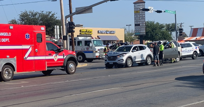 SAN ANGELO, TX – At least two people were injured in a crash on Sherwood Way at Ave. N Monday morning.