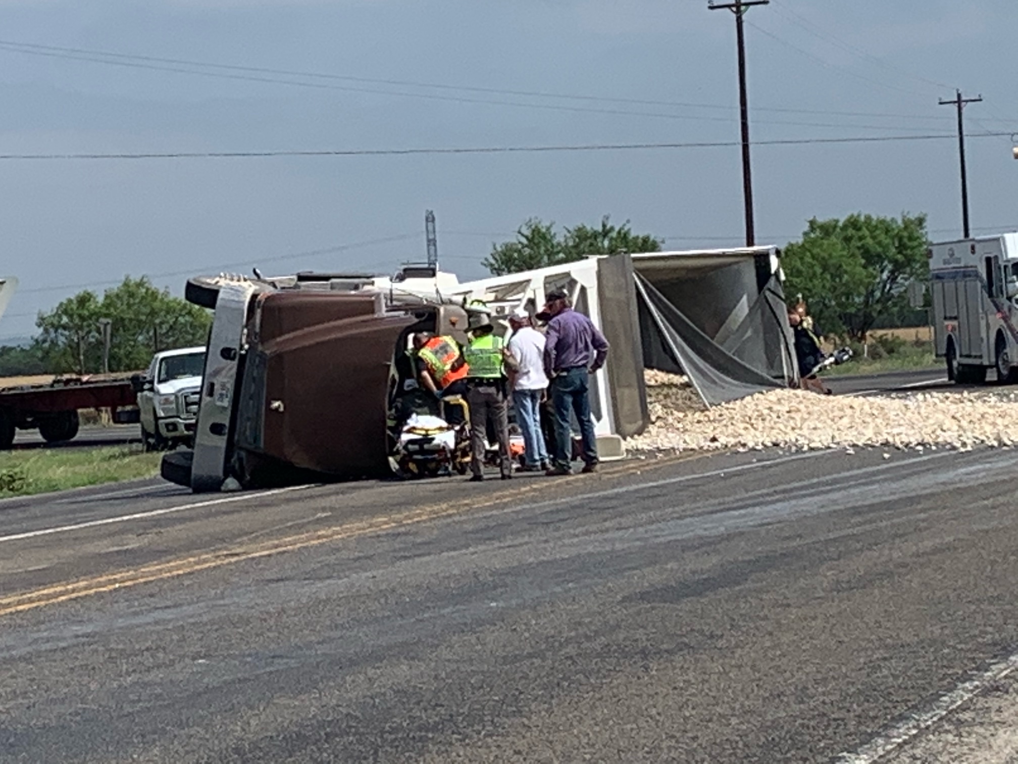 SAN ANGELO, TX – The driver of an 18-wheeler belly dump truck had to be cut out of the cab when the rig overturned while turning onto US-277 from FM-2105 northeast of San Angelo.