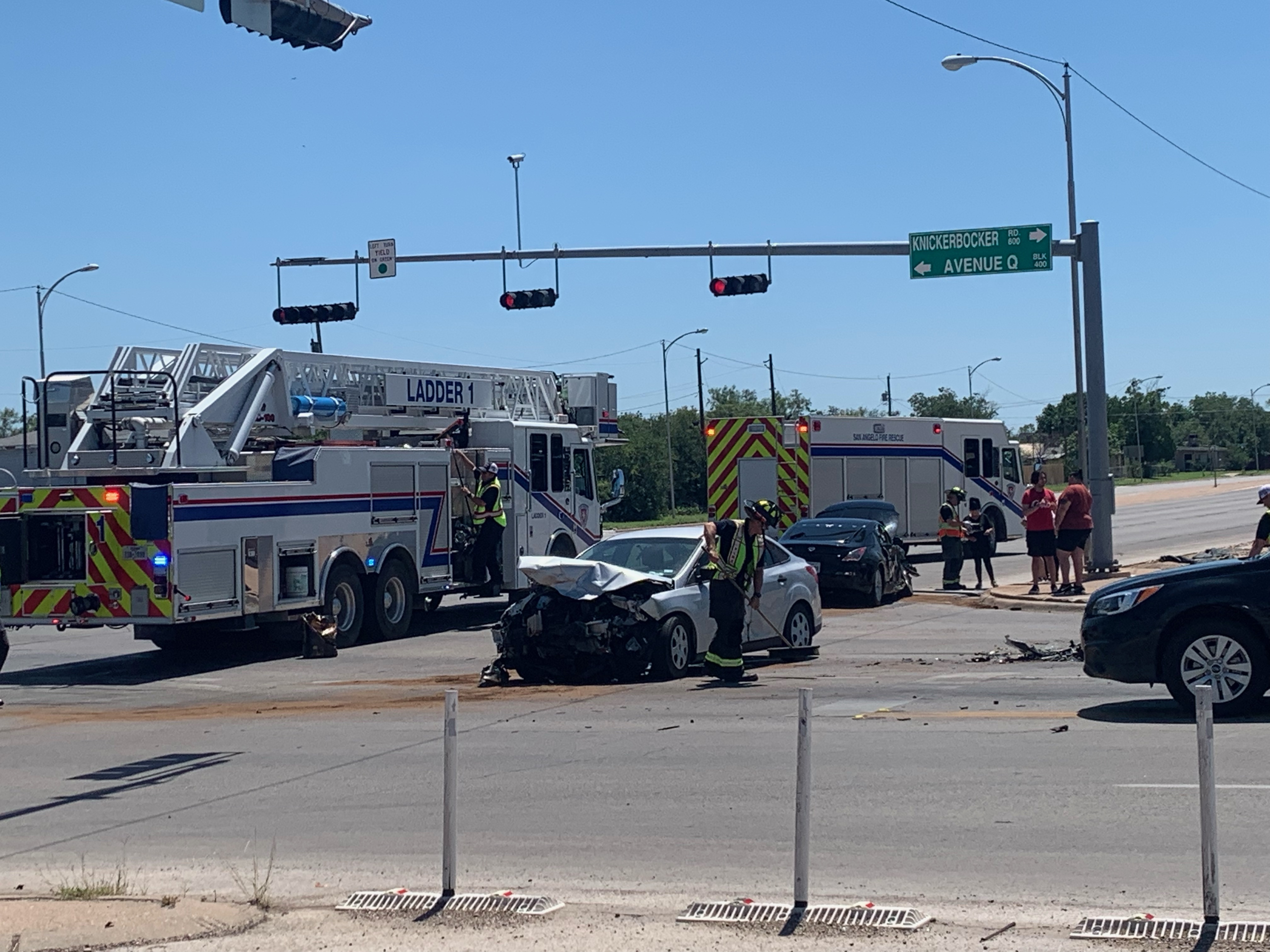 SAN ANGELO,TX – A two vehicle collision at the intersection of S. Bryant and Knickerbocker Rd. left one driver jammed inside a smashed vehicle.
