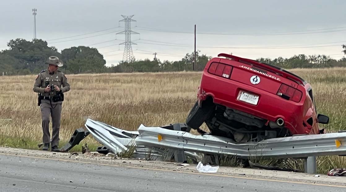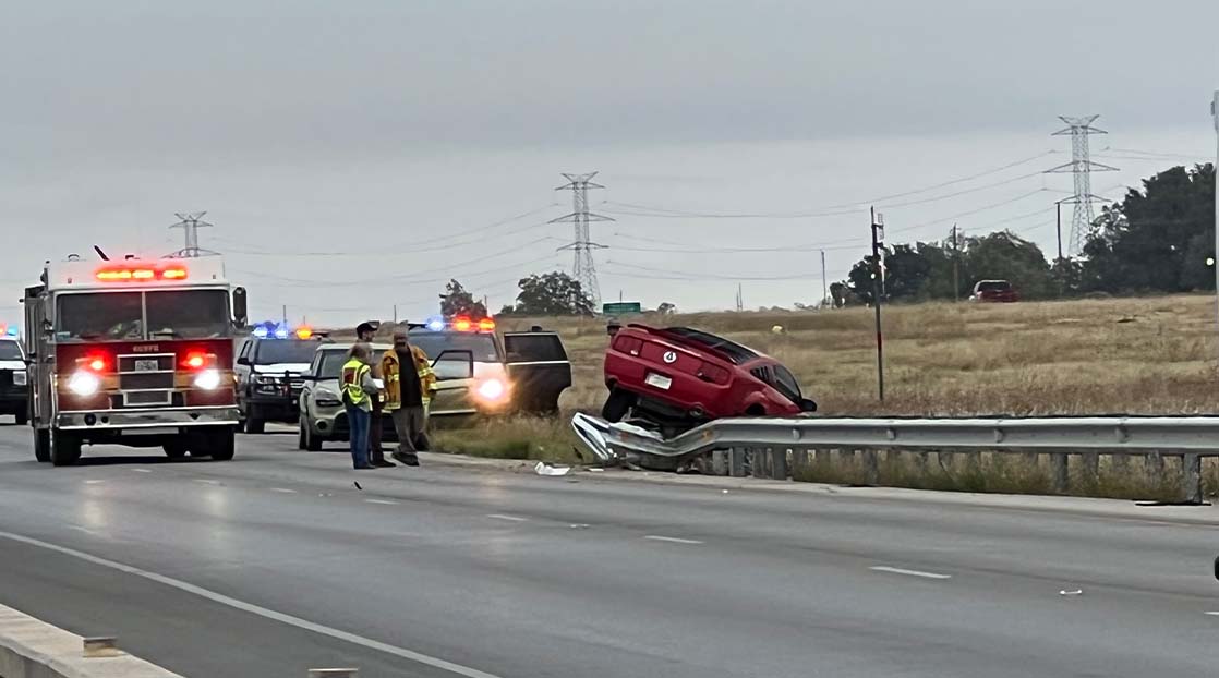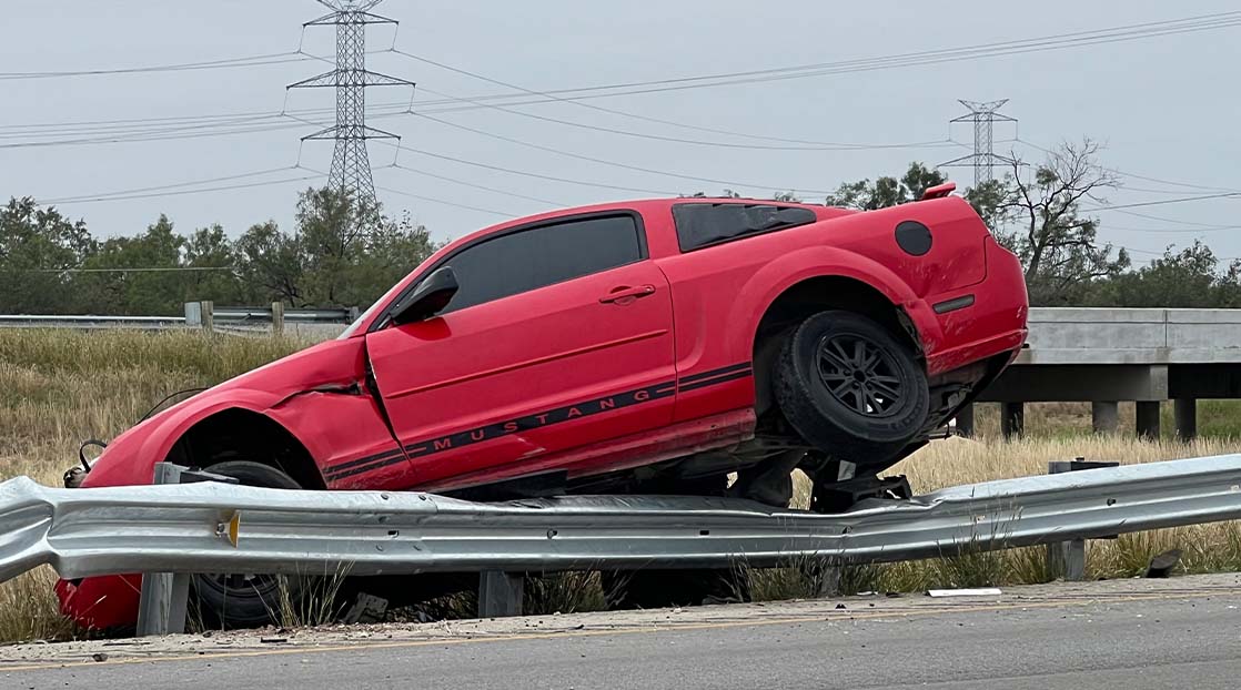 SAN ANGELO, TX –– The driver of a Mustang was transported to a local hospital after crashing into a guardrail on Hwy 87 near Grape Creek on Monday morning.