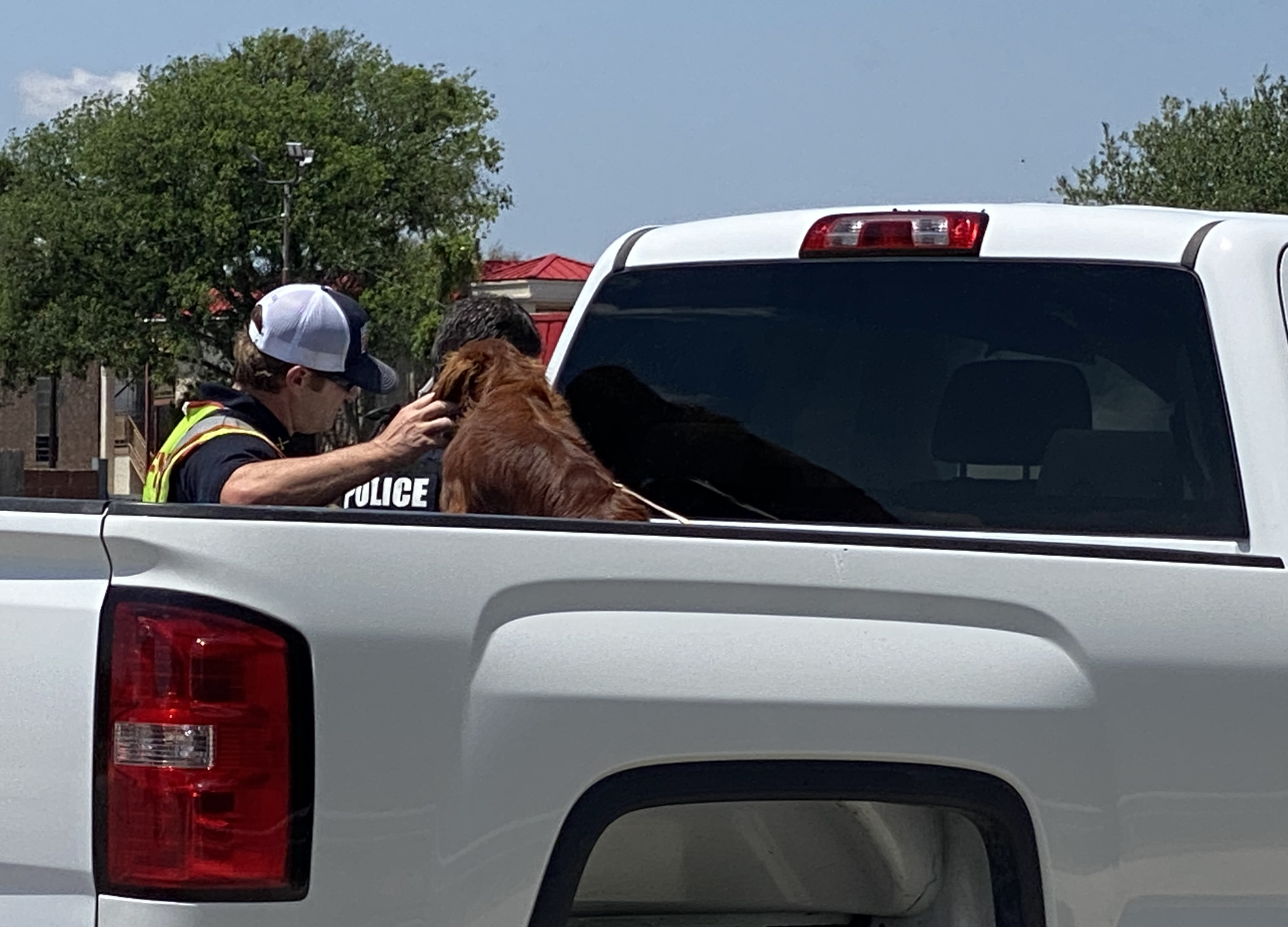 SAN ANGELO, TX – A dog riding in the bed of a pickup was not seriously injured Monday after his owner crashed into a car in front of them near the intersection of S. Bryant Blvd. and Ben Ficklin Rd.