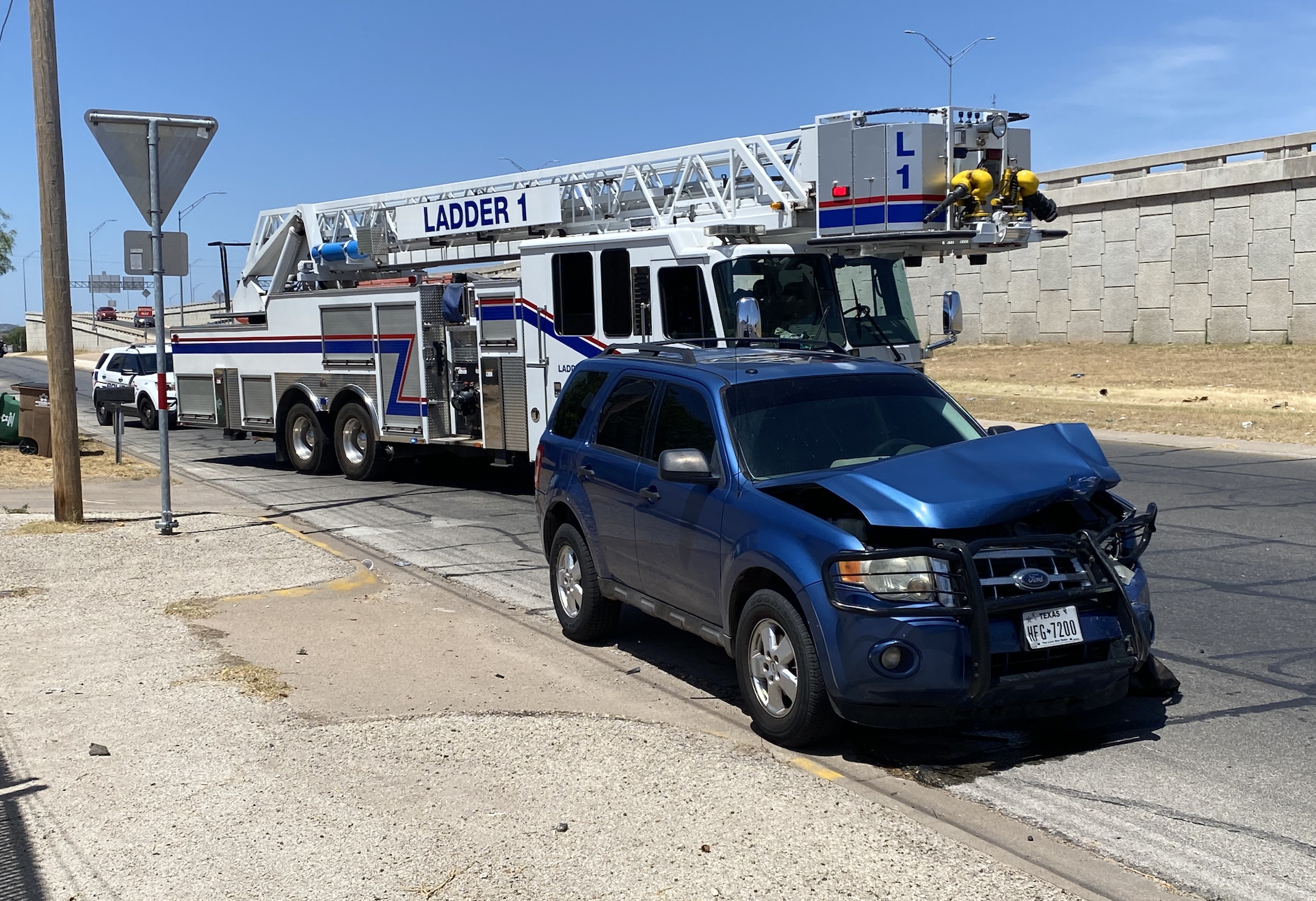 Officer Welch with the San Angelo Police Department told reporters at the scene that the blue Ford Escape was traveling eastbound on 6th St., failed to control speed, and rear-ended a white Honda Passport.