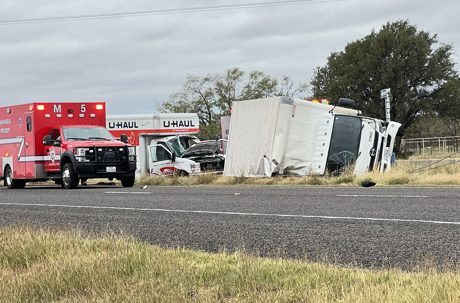 SAN ANGELO – A U-Haul box truck and an unmarked box truck crashed Wednesday morning on US Highway 67 north near Miles that sent one person to the hospital.