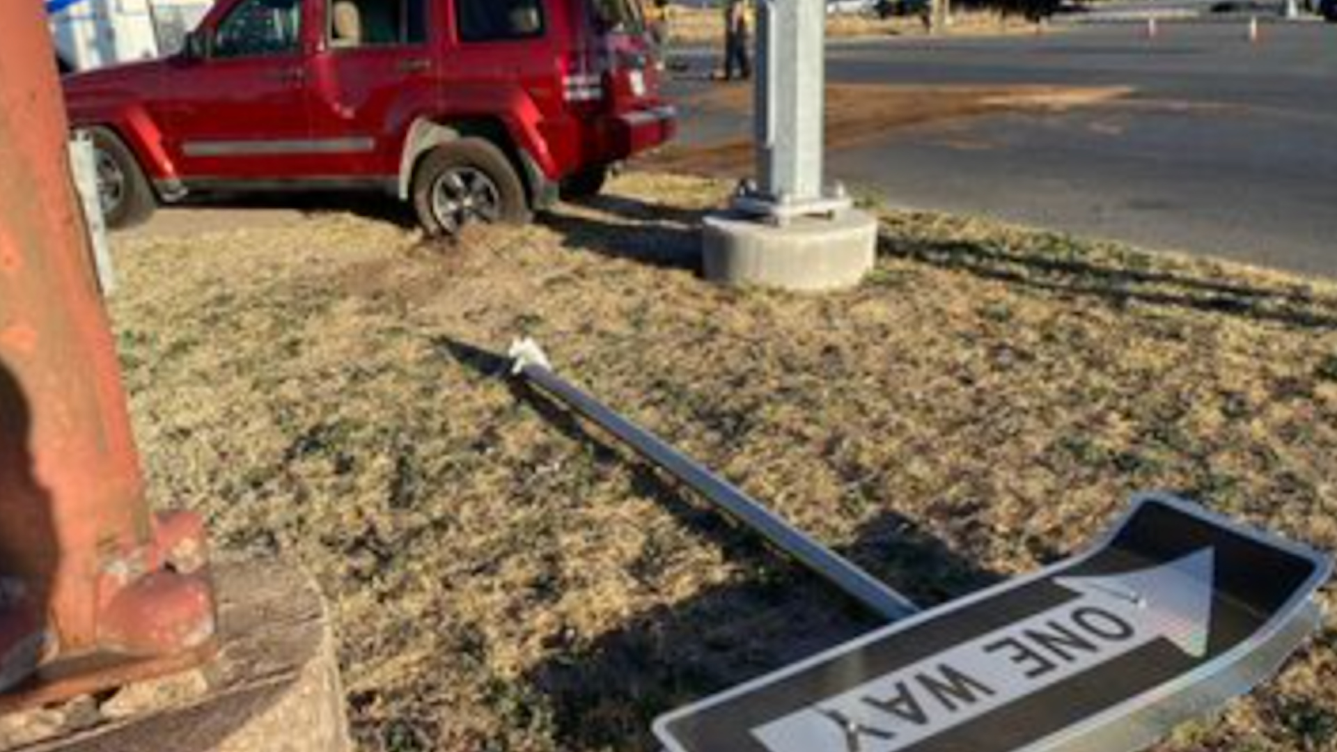 SAN ANGELO, TX – A traffic signal and a one way sign were taken out in two crashes on N. Bryant Blvd. and 22nd St. Wednesday morning.