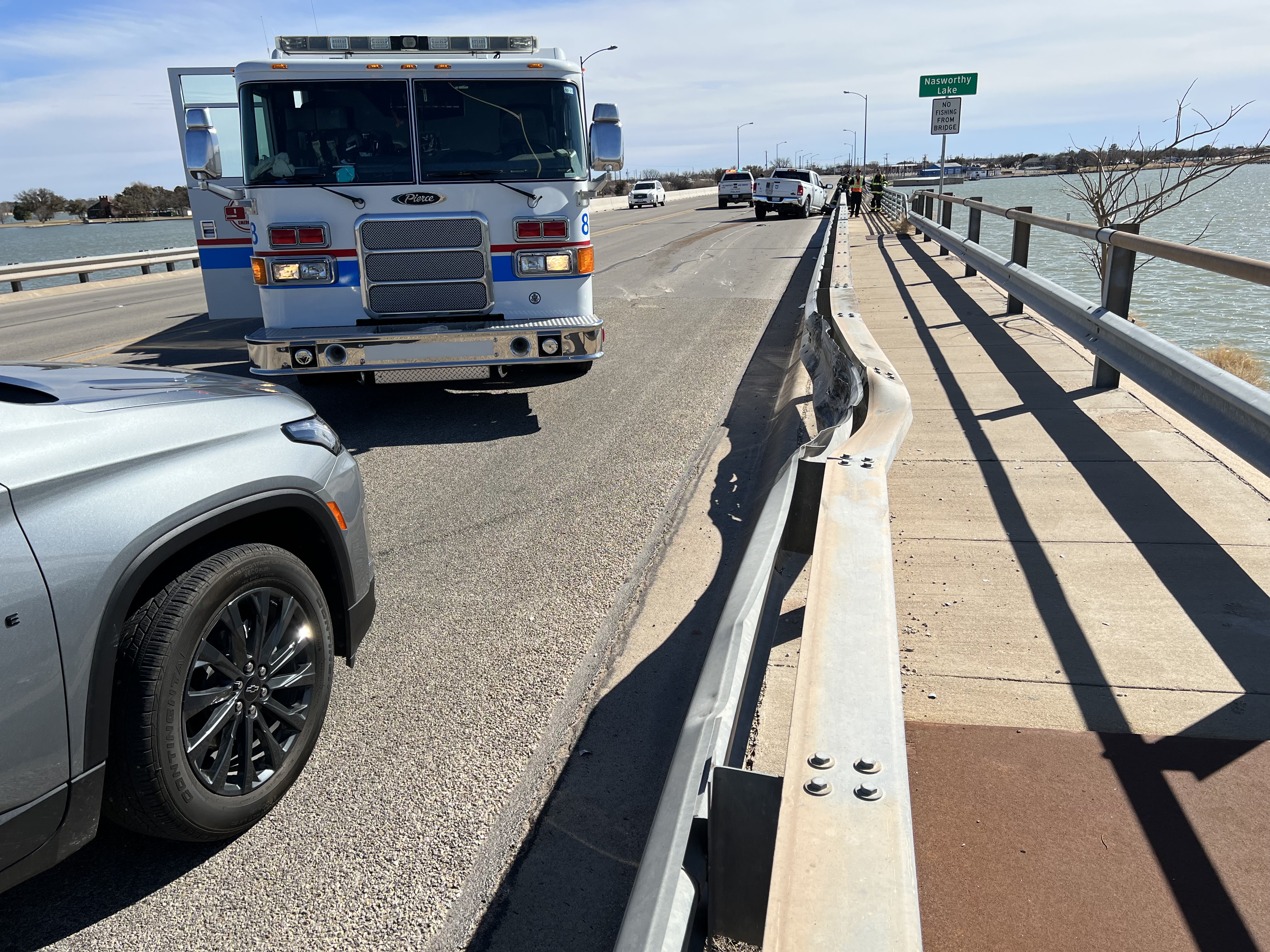 According to reporters on scene, on Feb. 12, 2023 at around 2 p.m., officers with the San Angelo Police Department and medics with the San Angelo Fire Department were dispatched to the Lake Nasworthy bridge for the report of a major crash.