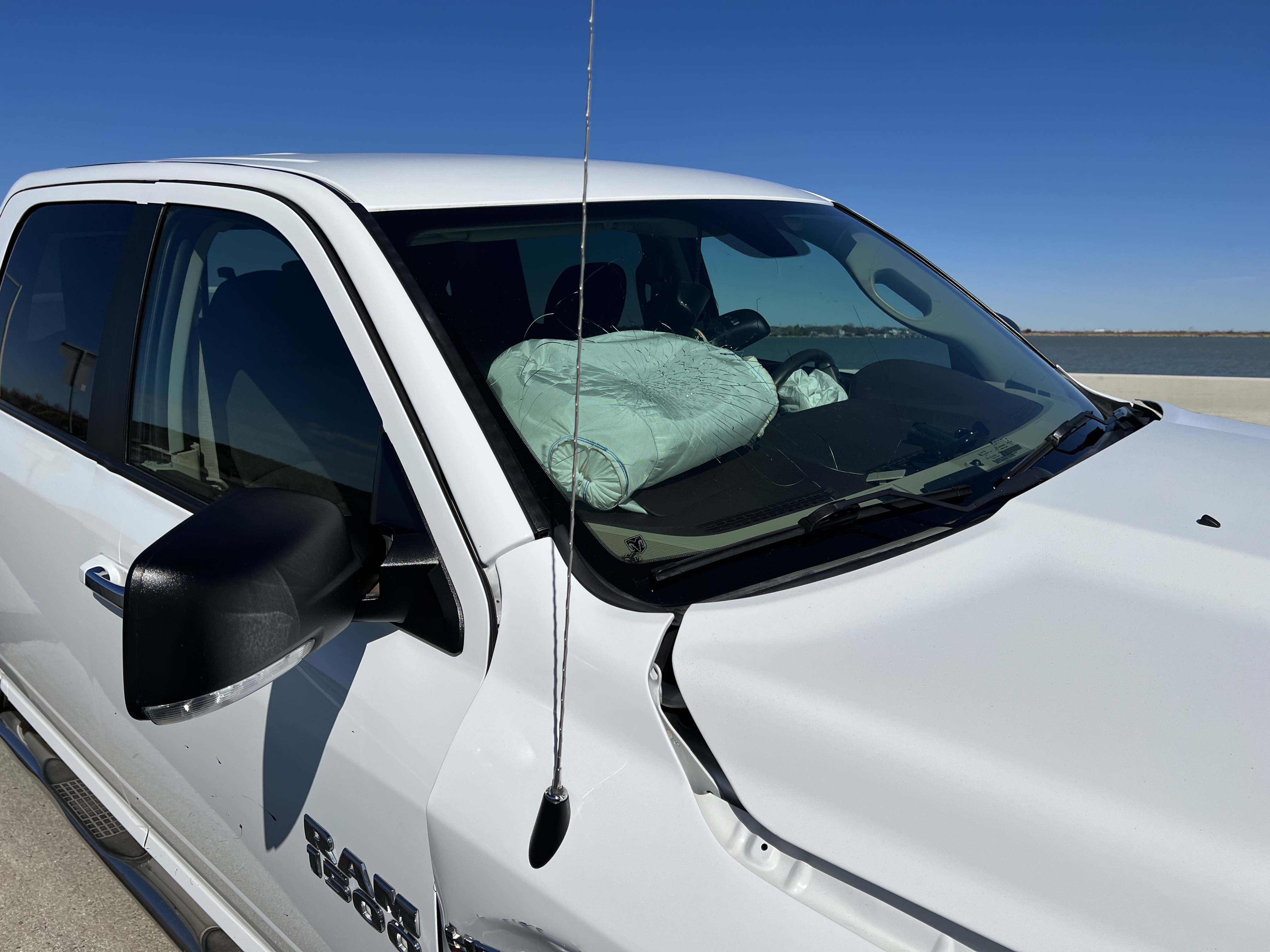 When they arrived, the crew discovered a White 1500 Dodge Ram that had crashed into the guard rail on the bridge.