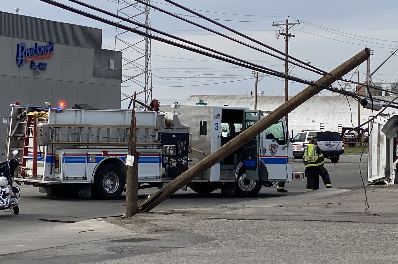 The rig traveled north and also snagged power lines and snapped power poles between Houston Harte and Beacon St. causing major damage.