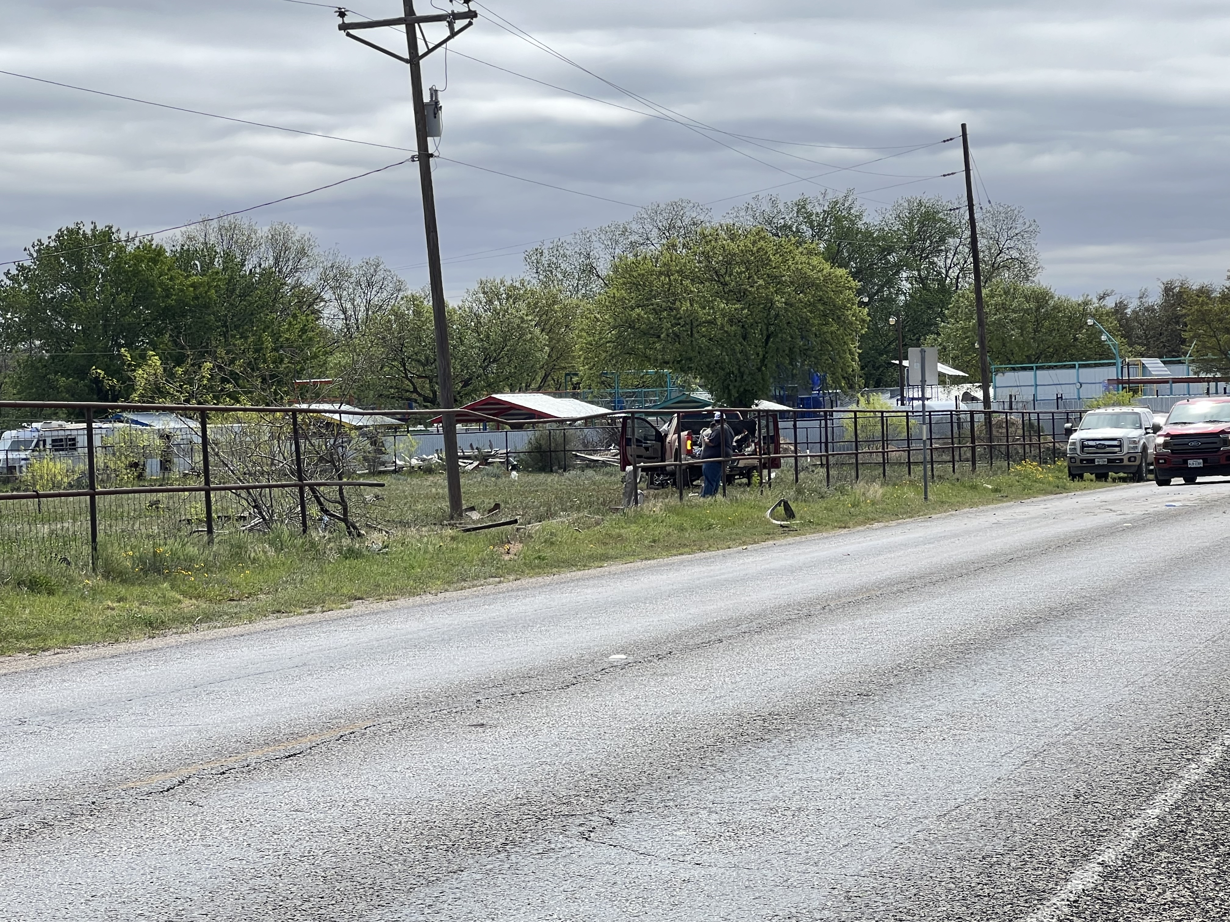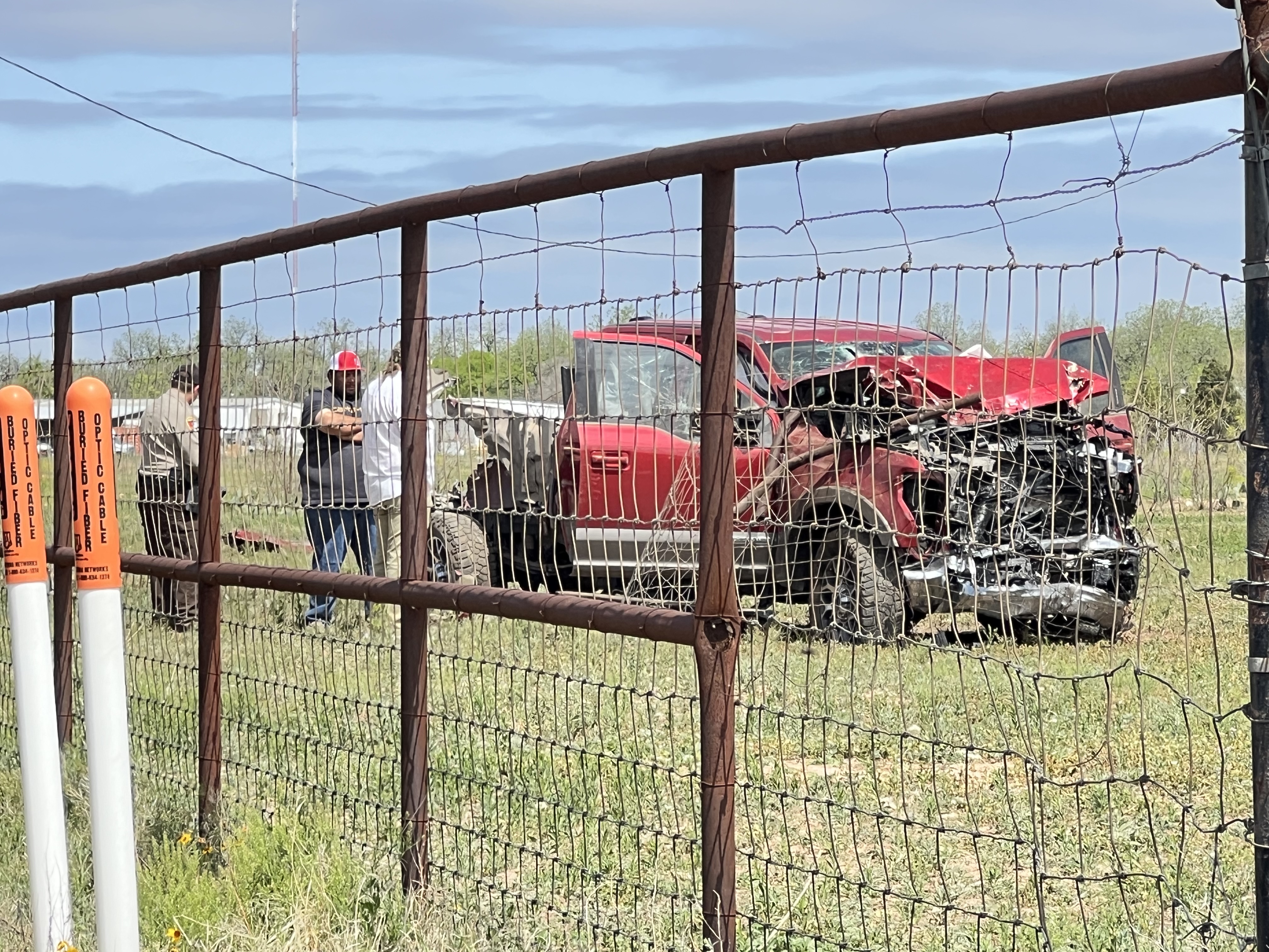 As for the cause of the crash, it is unknown, but it appeared to reporters that the truck had left the highway at the location, drove from the highway across the frontage road into the fence, and through the field.