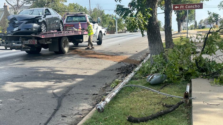 SAN ANGELO, TX — At around 5 p.m. Sunday, a driver of a Toyota Camry veered off the prepared surface on S. Abe St. and destroyed a power pole.