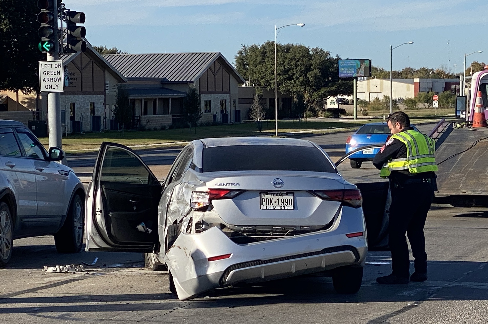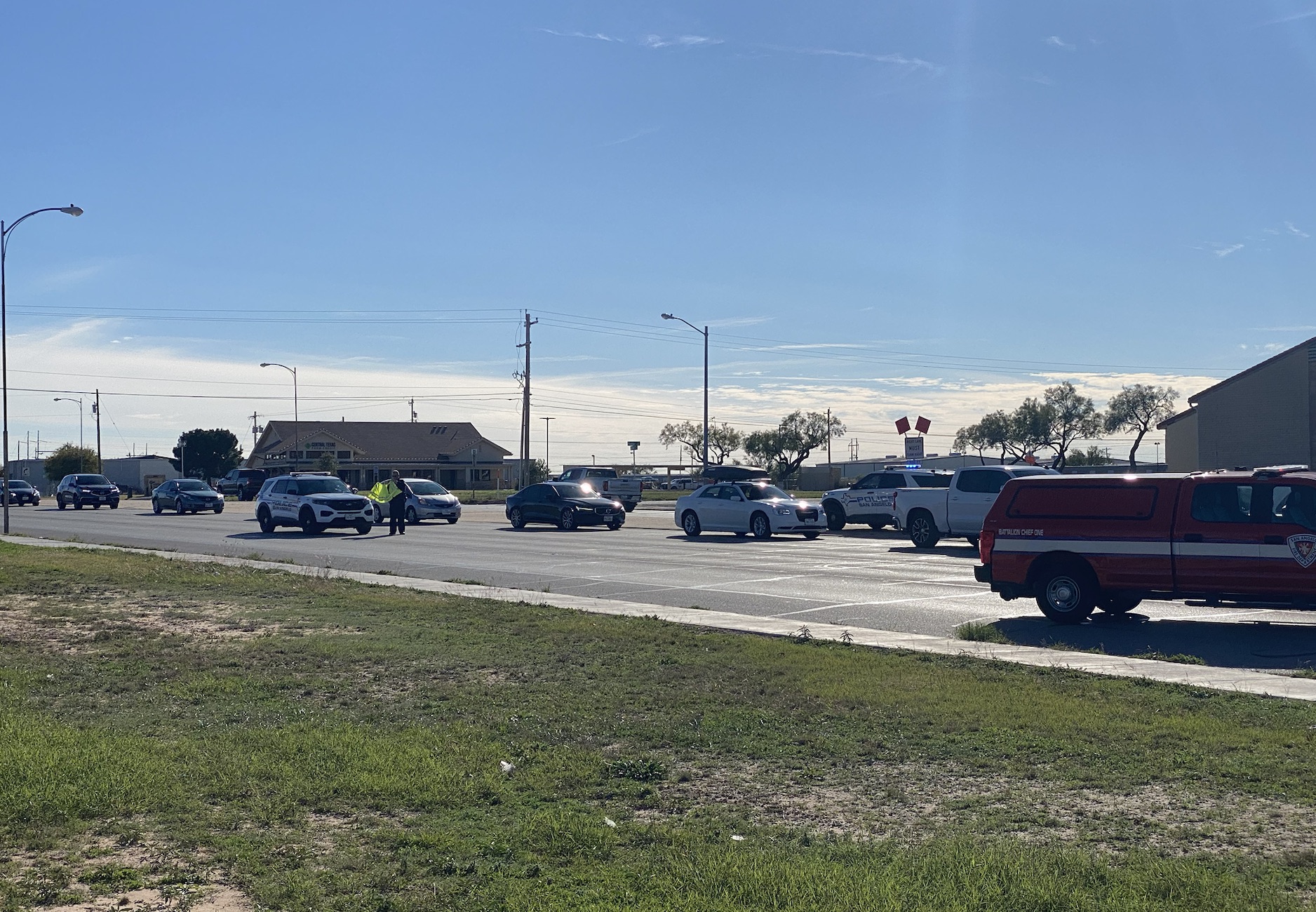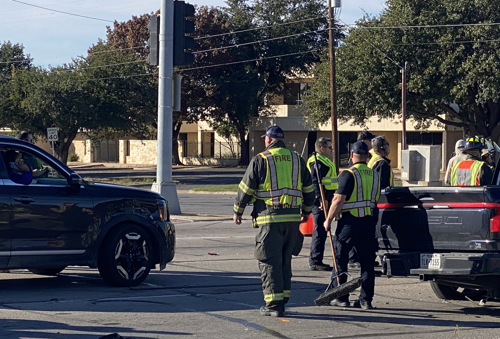 Law enforcement worked the scene and shut down three lanes of northbound traffic and the right turn onto South Jackson Street. The San Angelo Fire Department cleaned up debris and tow trucks arrived to remove the vehicles involved. The Kia Telluride was able to drive off. A white GMC Acadia was thought to be involved but wasn’t.