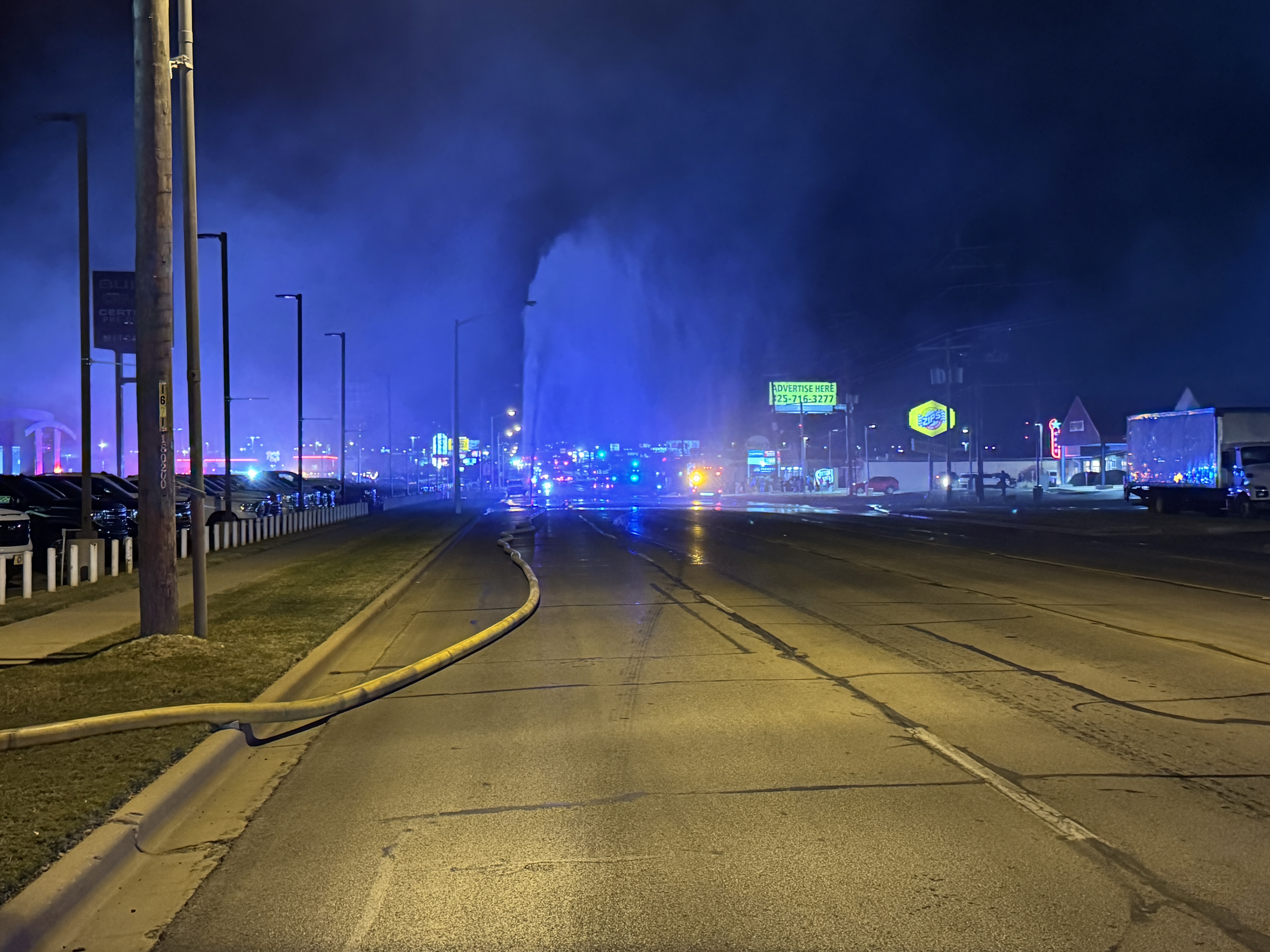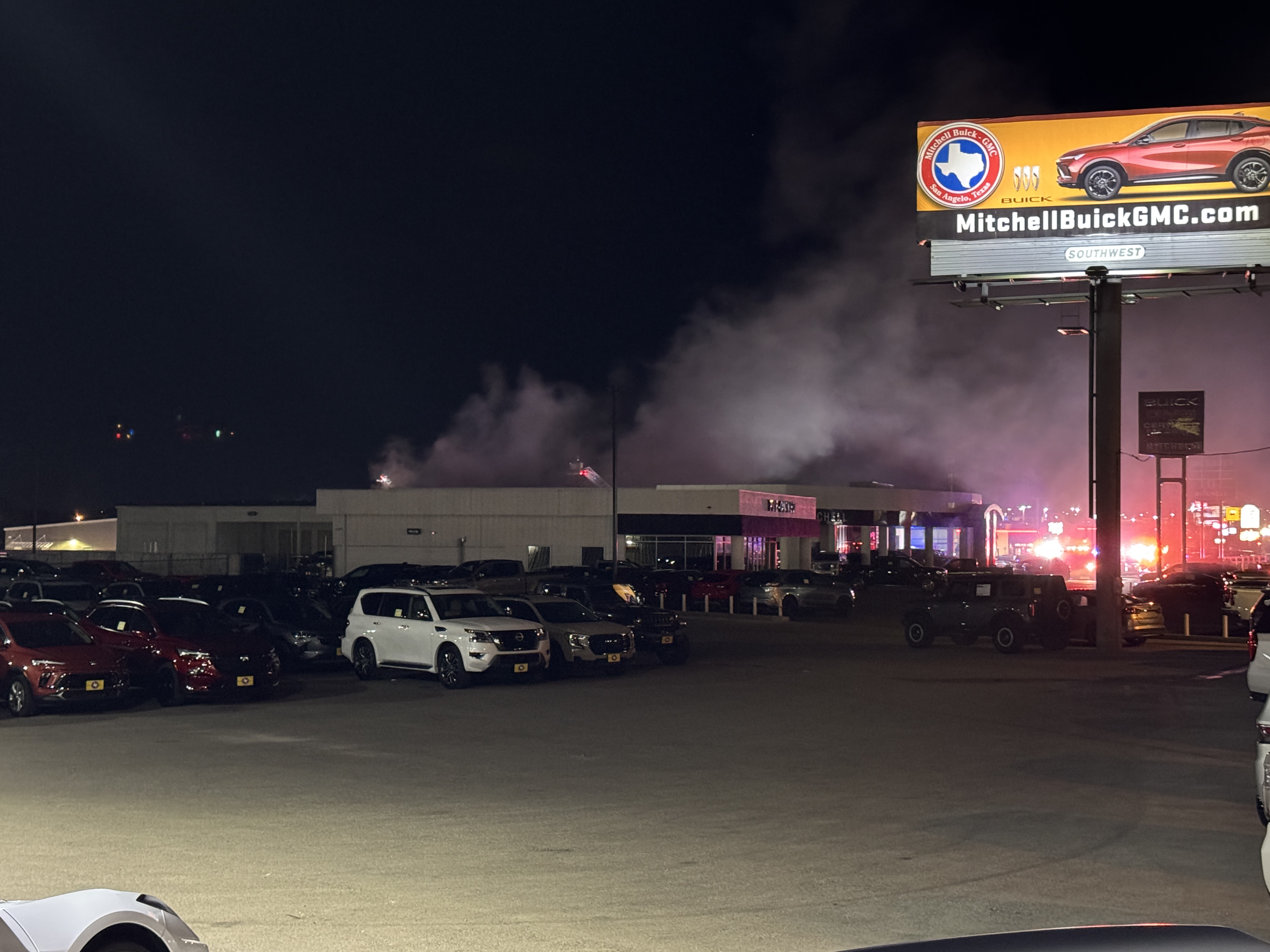 “At about 9:21 tonight, we got a reported structure fire over at Mike Mitchell’s dealership, right across from Rosa’s Café,” Fire Chief Patrick Brody said. “The first crew on the scene saw heavy smoke coming from the rear of the building, which appeared to be the shop area.”