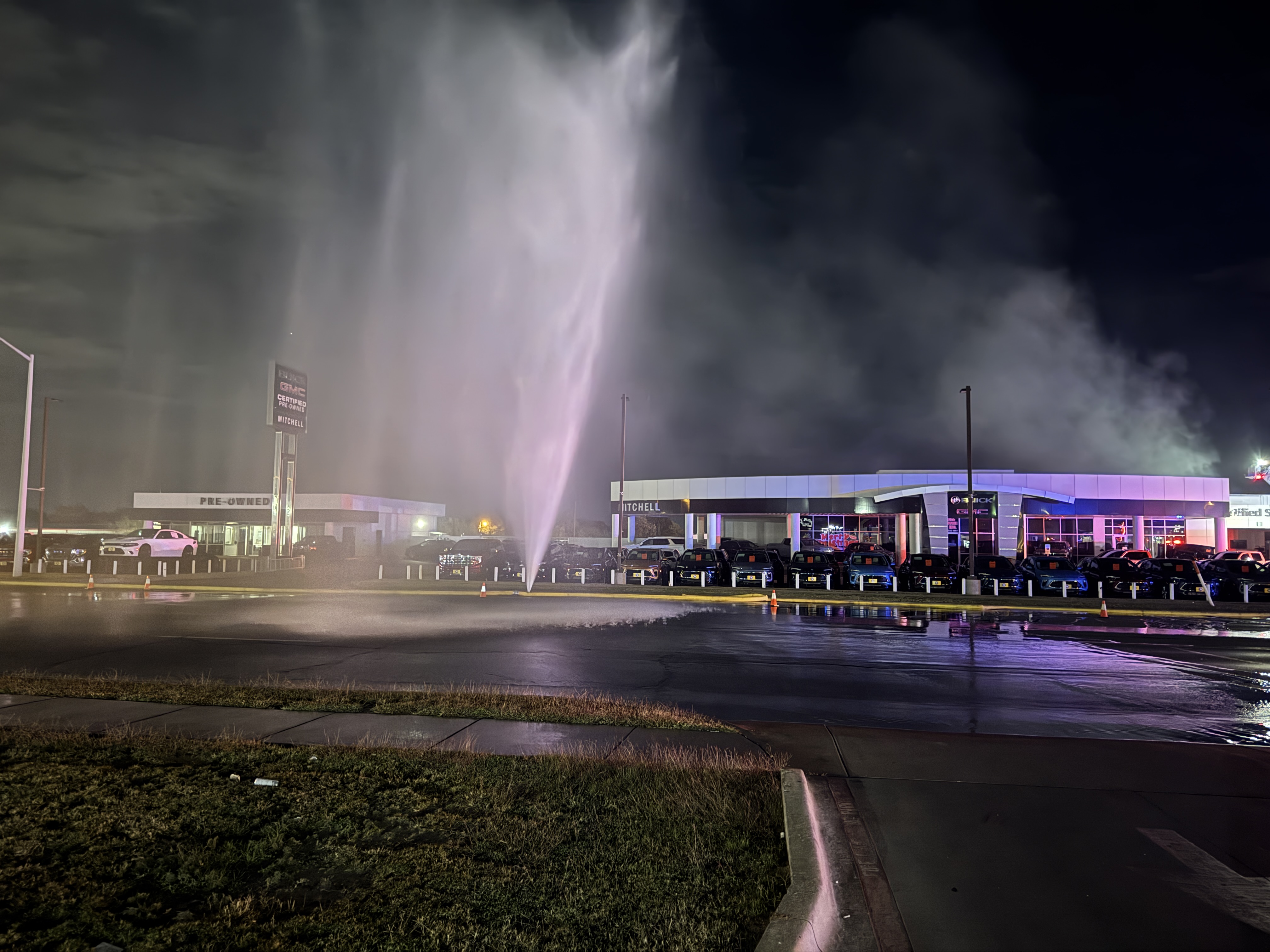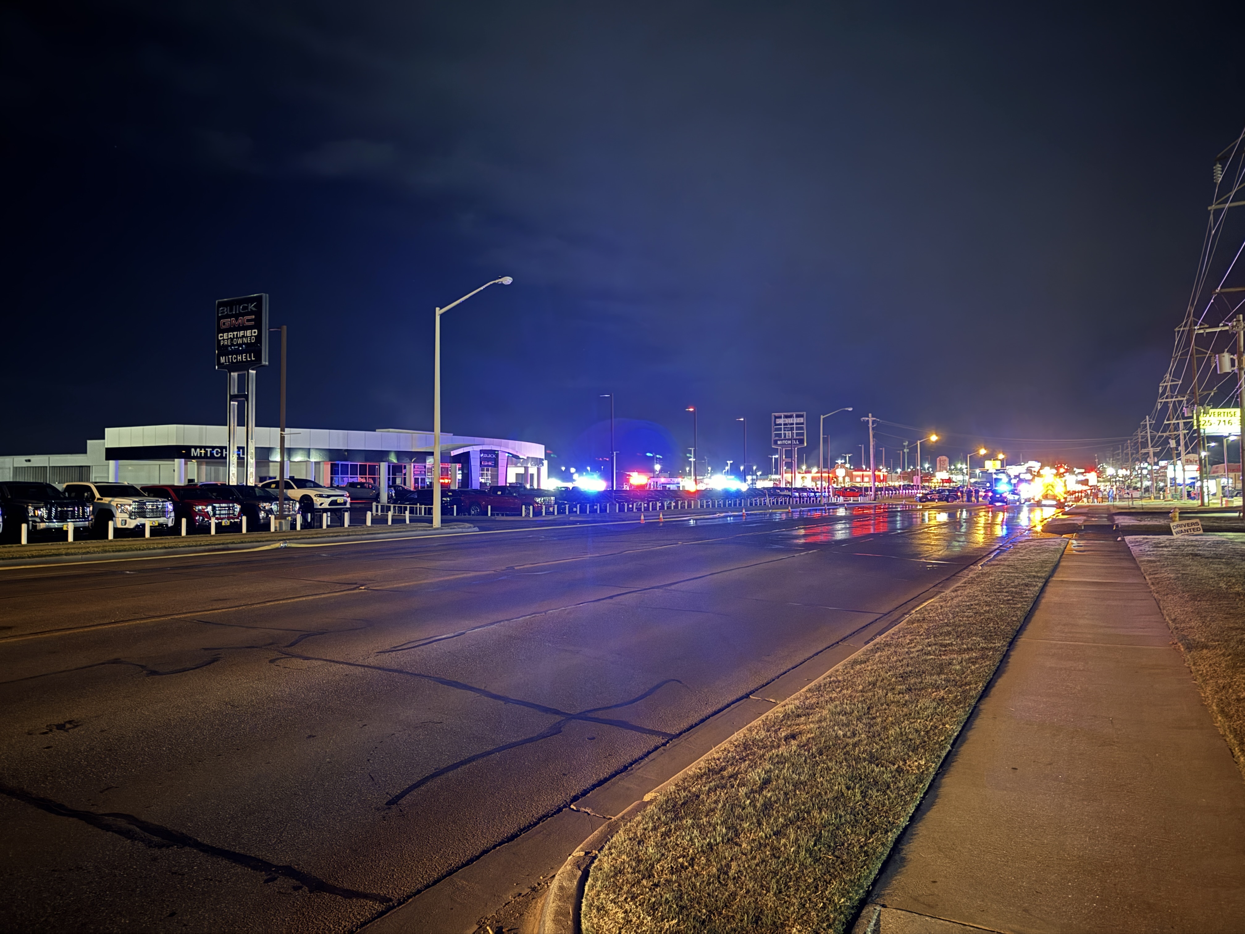 The dealership’s car and truck inventory was undamaged, and no injuries were reported.