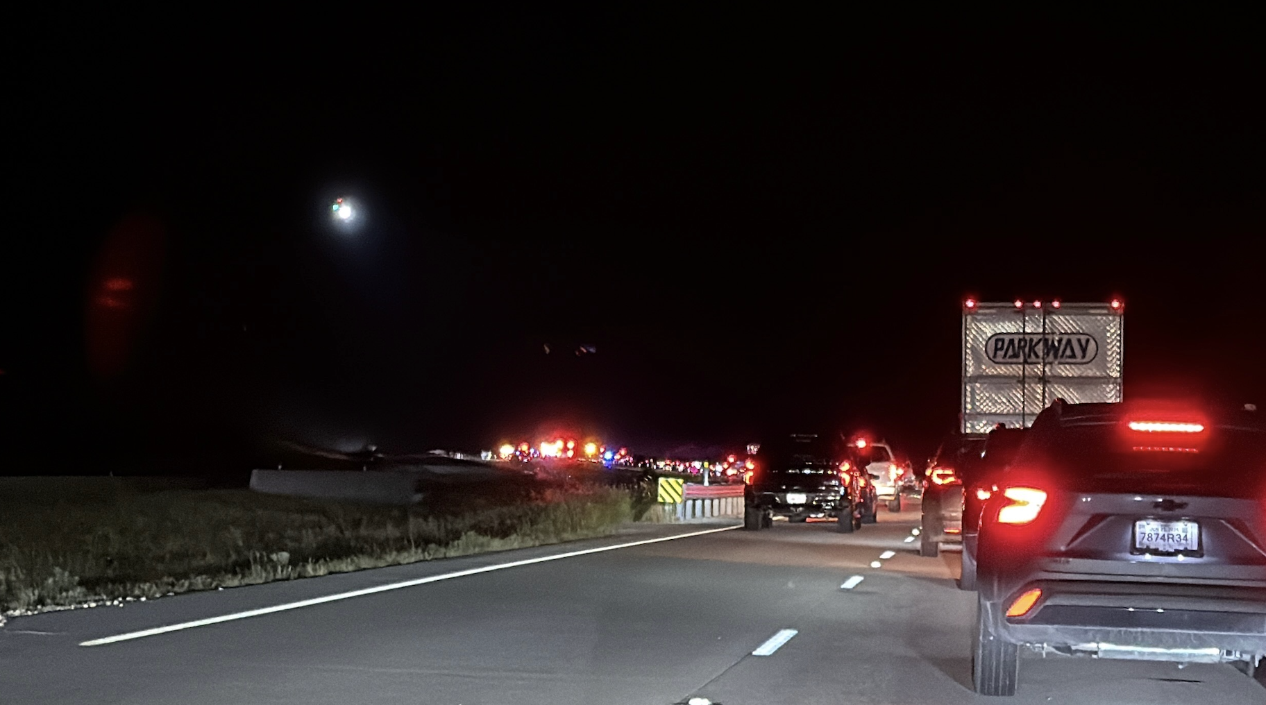 Reporters on scene observed lanes of traffic backed up and at a stand-still on Highway 87. A white two door vehicle and a black two door vehicle were at least two of the vehicles involved.
