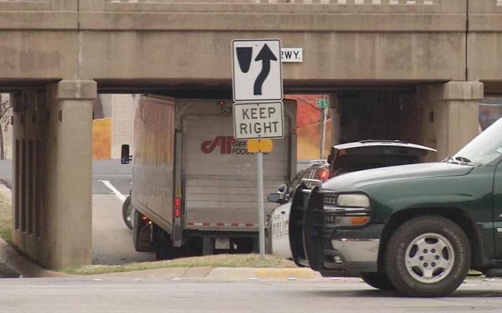 Big Rig Stuck Under Overpass Causing Traffic Delays