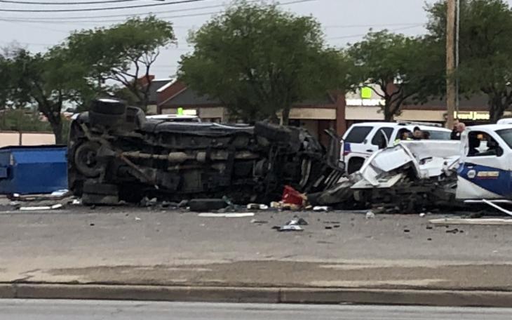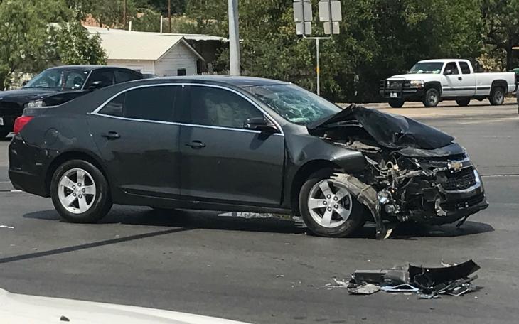 Malibu Crashes into F150 on N. Bryant Blocking Traffic