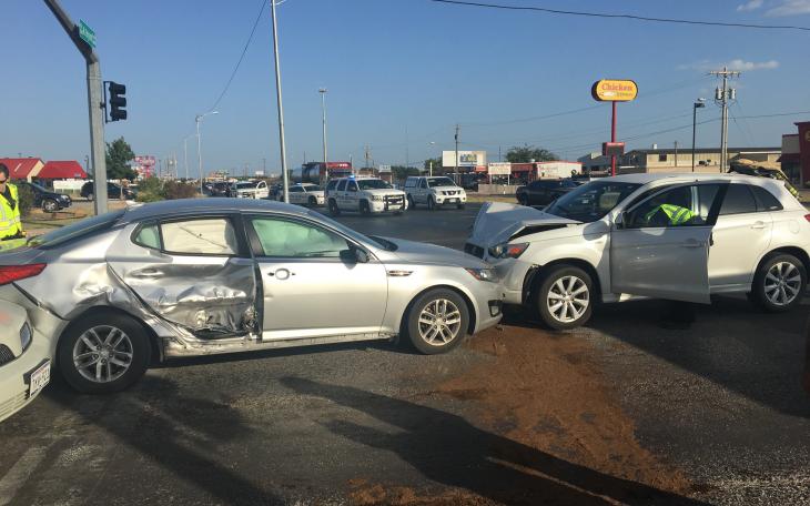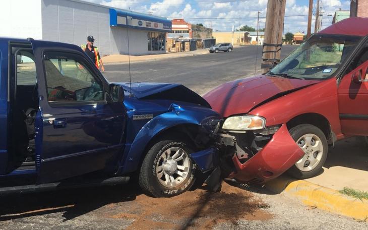 Ford and Chevy Pickups Collide on Abe St. After an Unsafe Lane Change