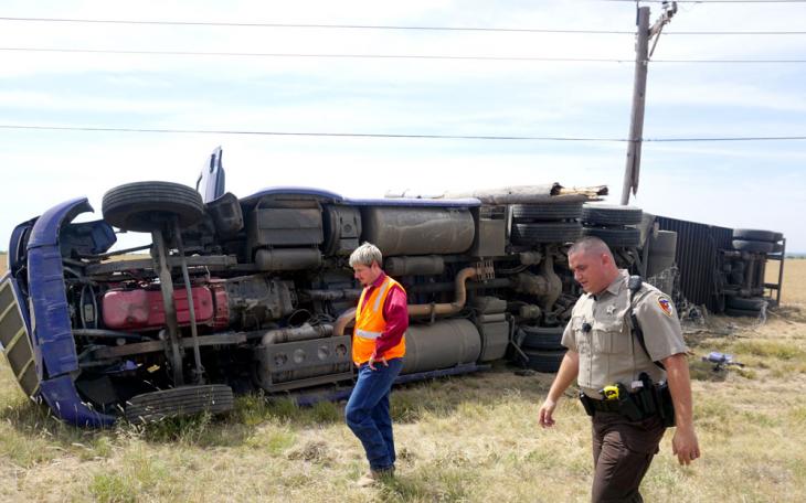 18-Wheeler Loses Control, Strikes Pole, Rolls