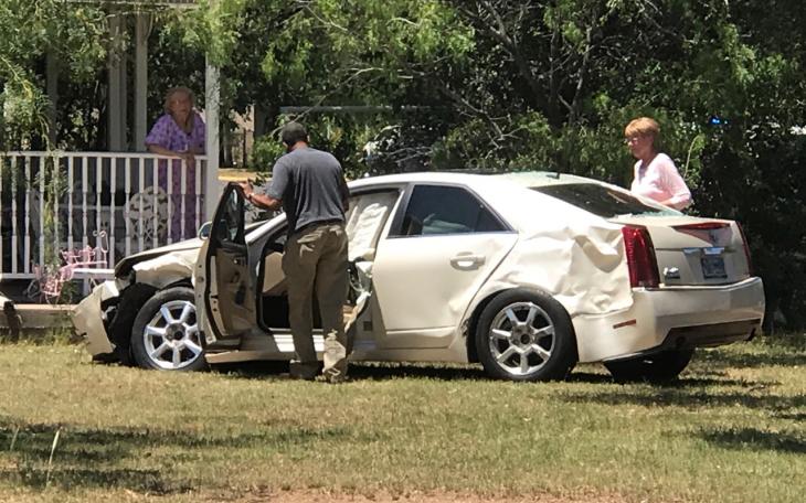 Caddy T-Bones a Nissan Before Plowing Through Yard