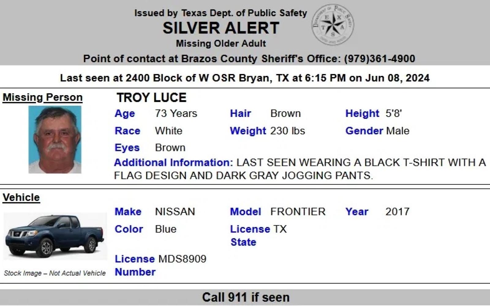 Troy Luce's body was discovered by a jogger on a Midland County jogging trail, according to a press release from the Brazos County Sheriff's Office.