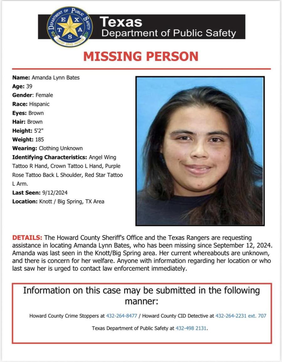 BIG SPRING – On April 2, 2026, the Texas Rangers, in coordination with the Howard County Sheriff’s Office, arrested Howard County resident Andres Perches, 31, in connection with the murder of missing person Amanda Bates, 39.