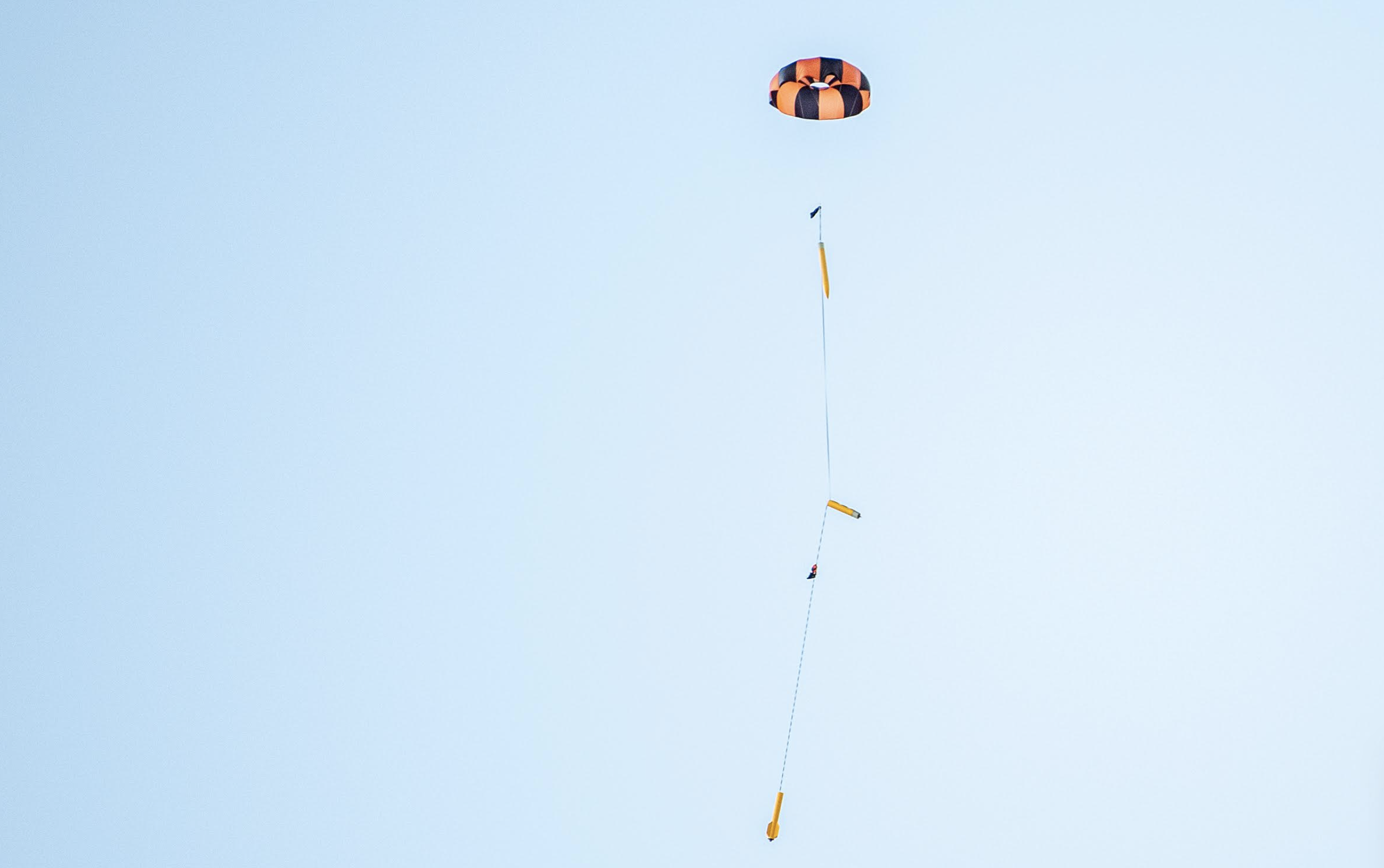 The CandyRam rocket is 8-feet tall with a 5-inch diameter and weighs approximately 20 pounds. The rocket launched, travel to an altitude of over 5,000 feet, land safely and then deploy a remote-controlled camera to photograph the landing site.